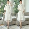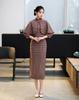 Leite de mamão primavera e verão novo vintage étnico cheongsam organza vestido longo colete de duas peças terno elegante