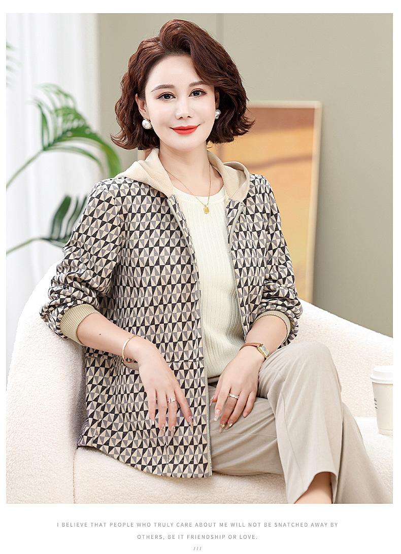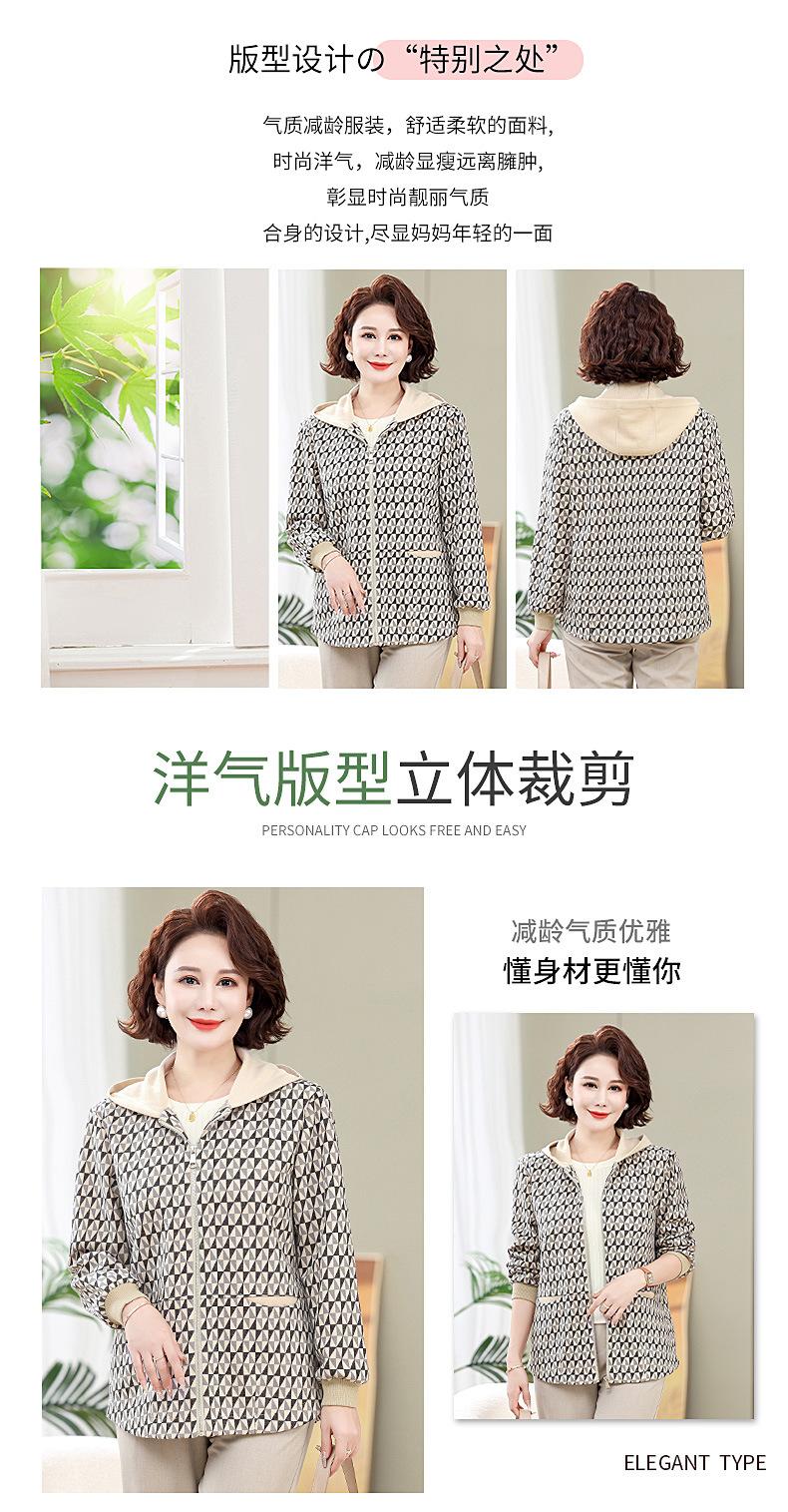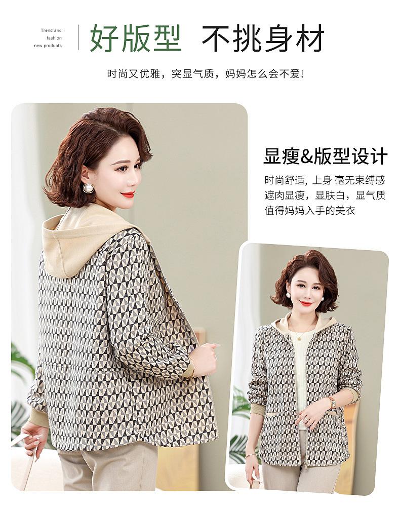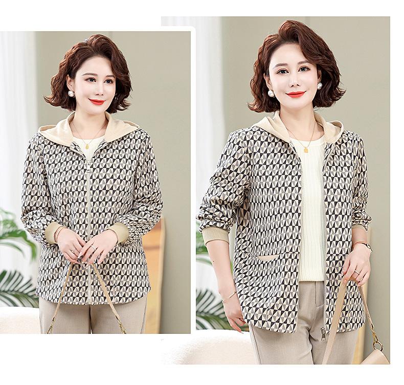 Jaqueta com Capuz Nova de Primavera e Outono Roupa de Mãe 2025 Nova Jaqueta com Zíper Tops para Mulheres de Meia-Idade e Idosas Atacado