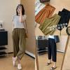 Calça Casual Malha Textura Feminina Verão Fino 2024 Nova Chegada Calça Perna Larga Largas de Cintura Alta Draping Calças