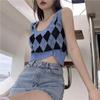 Colete de Cor Contrastante Verão Feminino Pequeno Rhomboid Interior Camisole Slim-fit Short Outer-wear Malha Ice Silk 2023