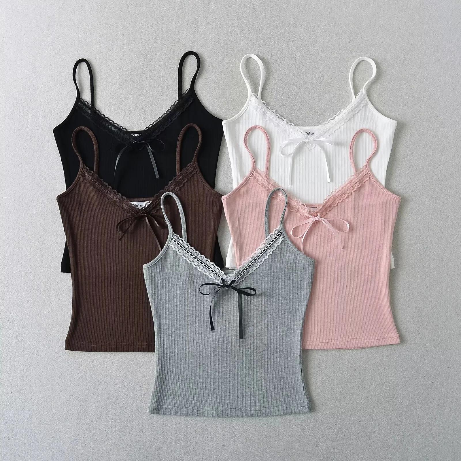 Camisola de renda pura para mulheres 2024 Novo estilo interno e externo usar short slim design nicho top