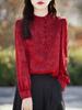 Francês retro stand collar jacquard camisa feminina manga comprida de alta qualidade novo estilo chinês pérola fivela design sentido nicho top