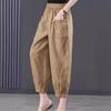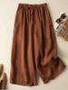 Verão 2025 Calças Largas de Algodão e Linho, Calças Artísticas de Cor Pura Nove Pontos, Culotes Femininos