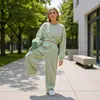 Início do outono novas roupas femininas europeias e americanas em torno do pescoço cor sólida para todos os jogos moletom básico de cintura alta calças casuais terno