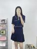 Roupa Feminina Transfronteiriça Primavera e Verão Novo Terno de Moda Francesa Conjunto de Duas Peças Feminino Top Tricotado Curto + Saia Plissada