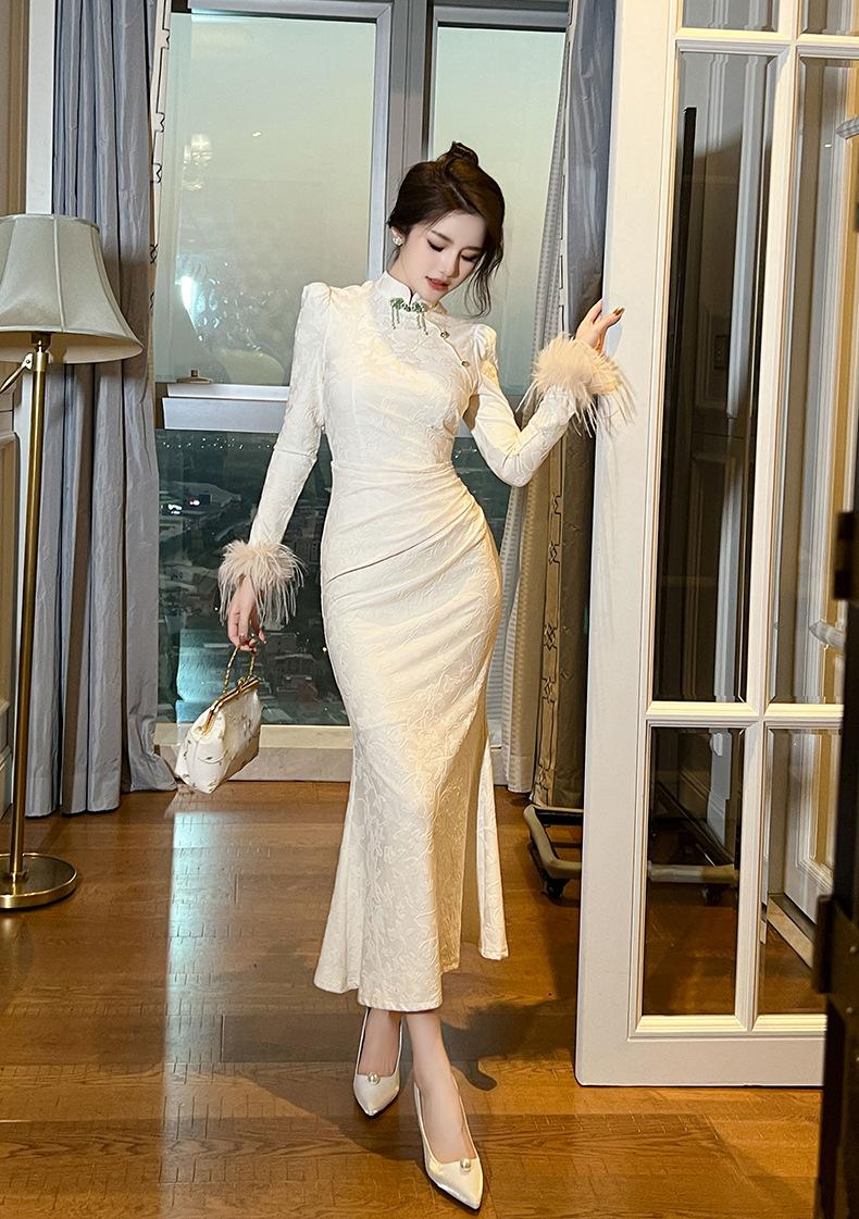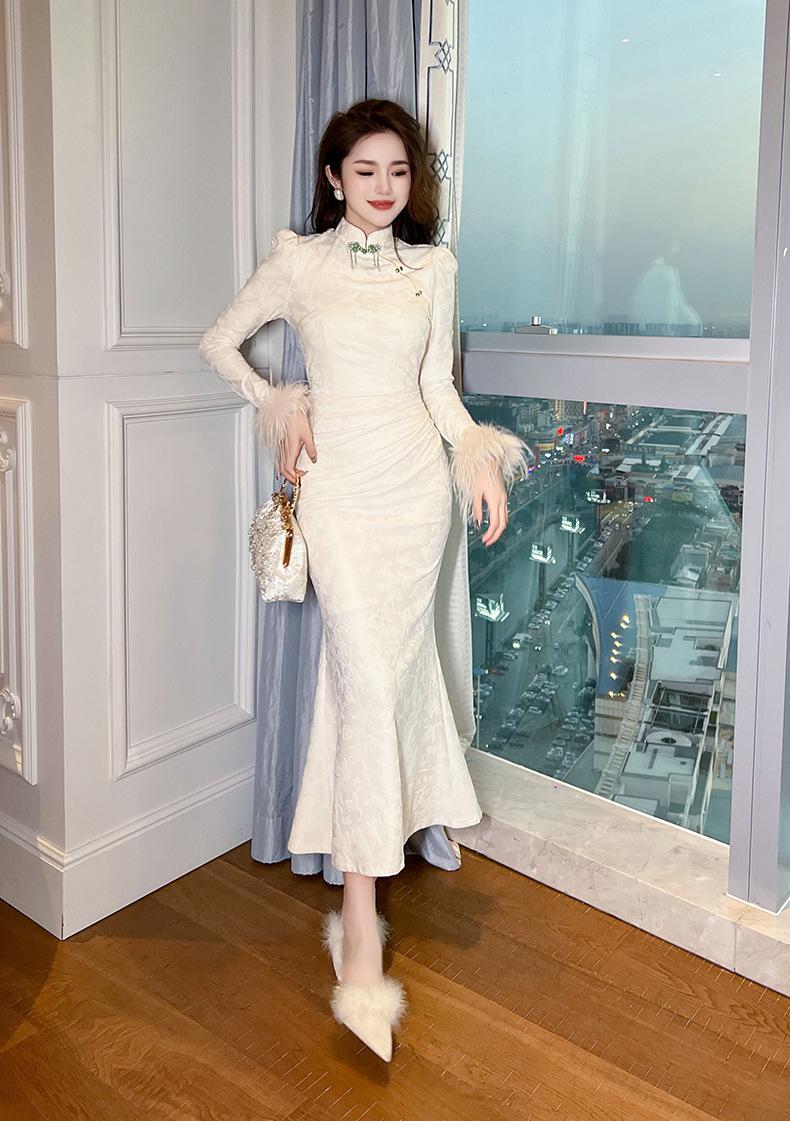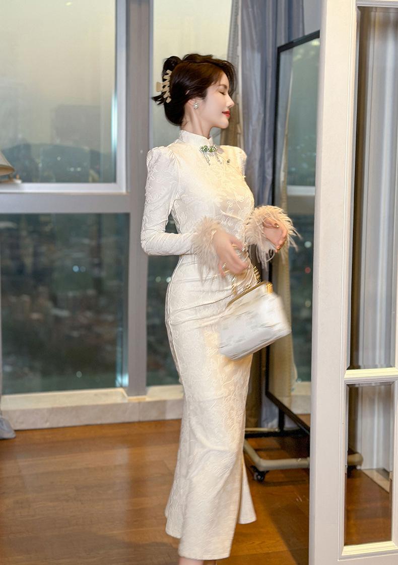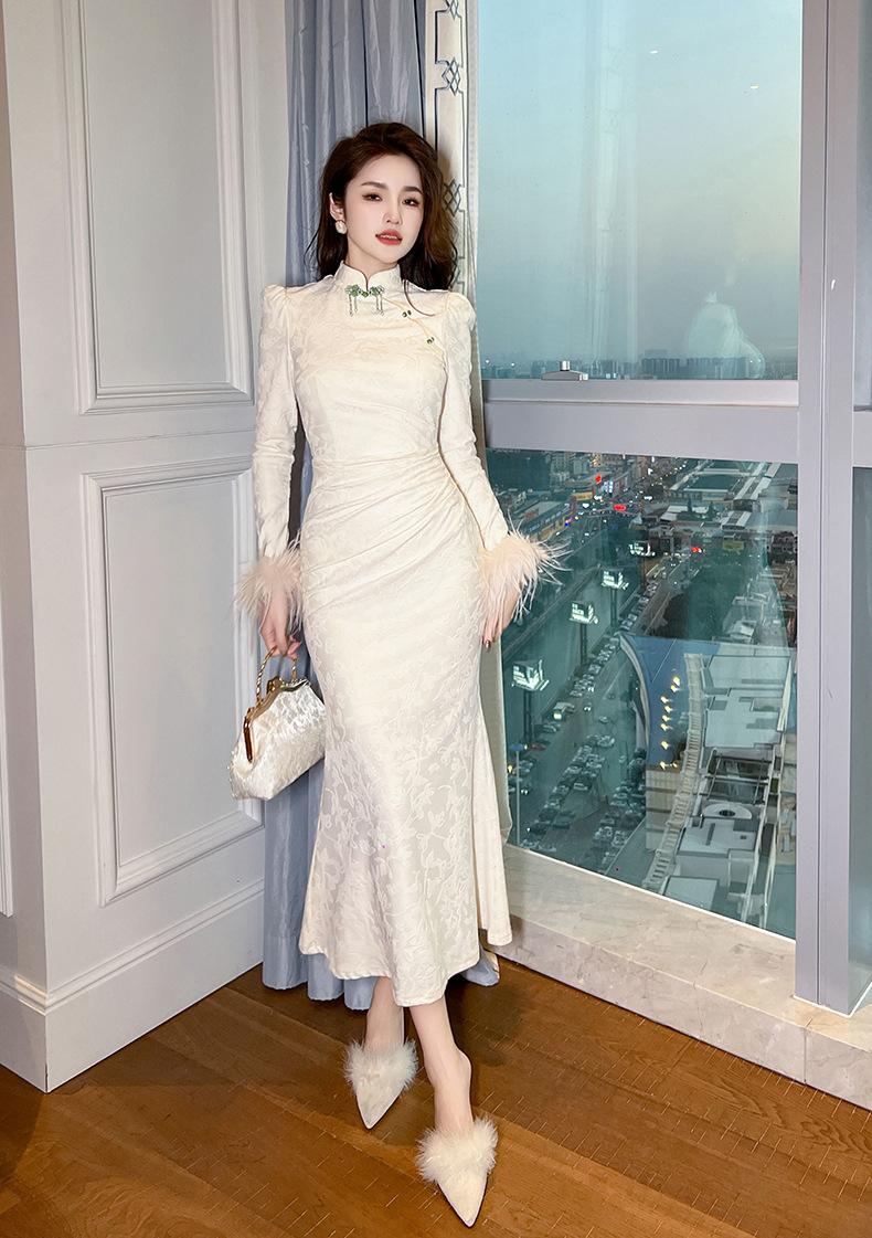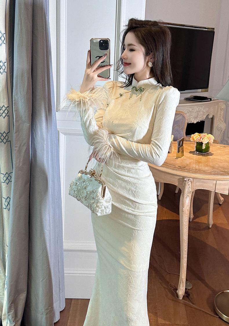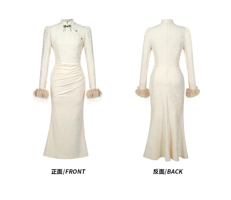 Roupas de Outono Novas 2025 para Mulheres, Estilo Chinês, Charme Gentil, Novo Vestido Slim Cheongsam Longo Chinoiserie 70215