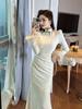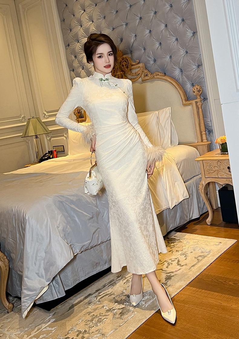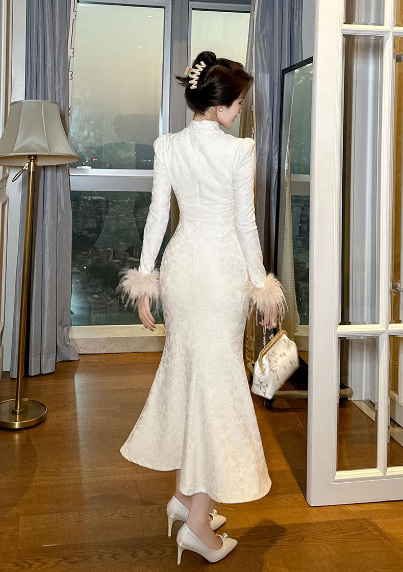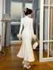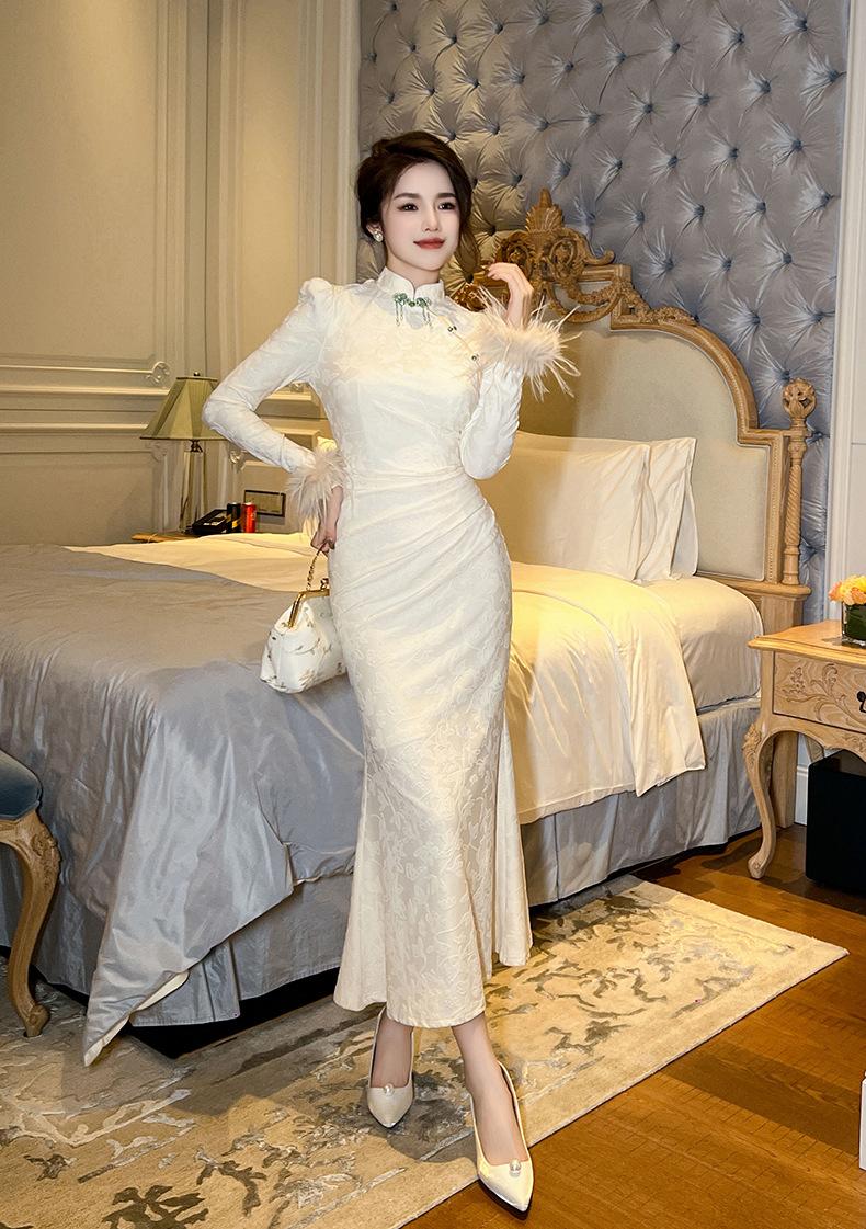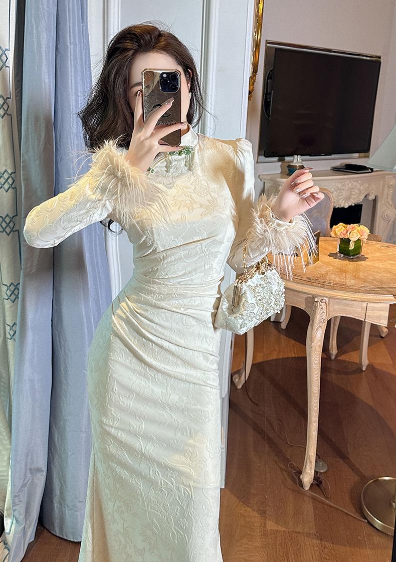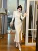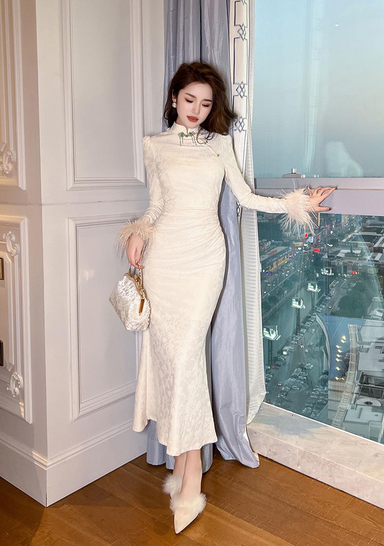 Roupas de Outono Novas 2025 para Mulheres, Estilo Chinês, Charme Gentil, Novo Vestido Slim Cheongsam Longo Chinoiserie 70215