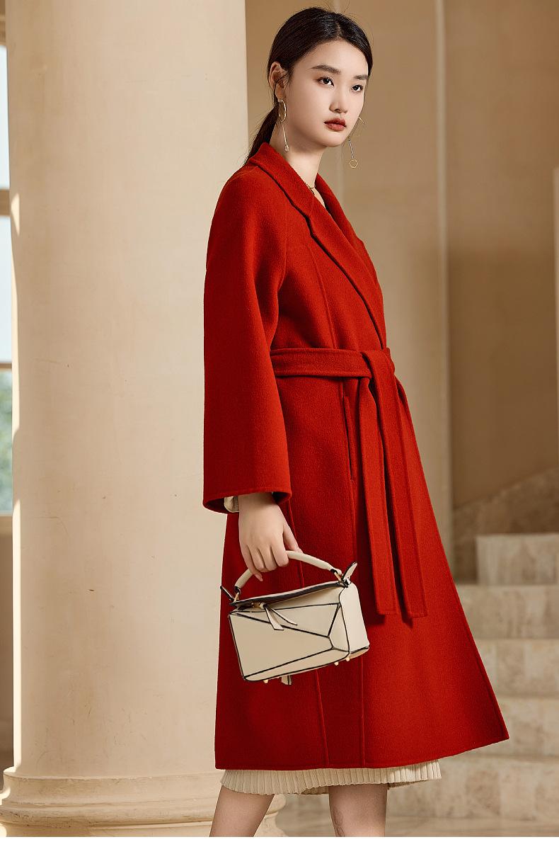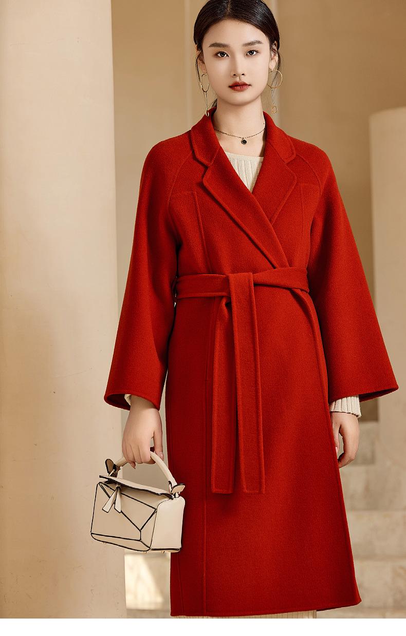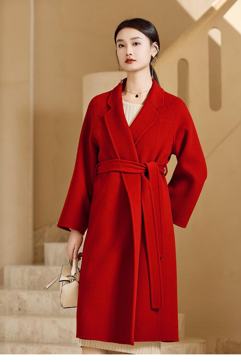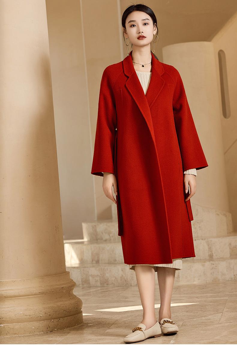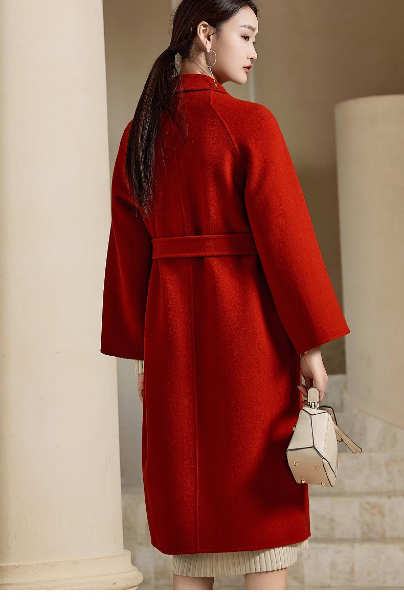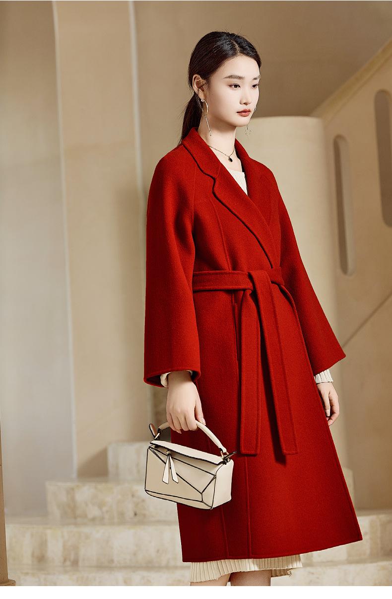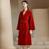 Casaco de Caxemira Lã de Alta Contagem Vermelho para Mulheres, Comprimento Médio, Outono e Inverno 2025, Casaco de Lã Solto Elegante