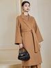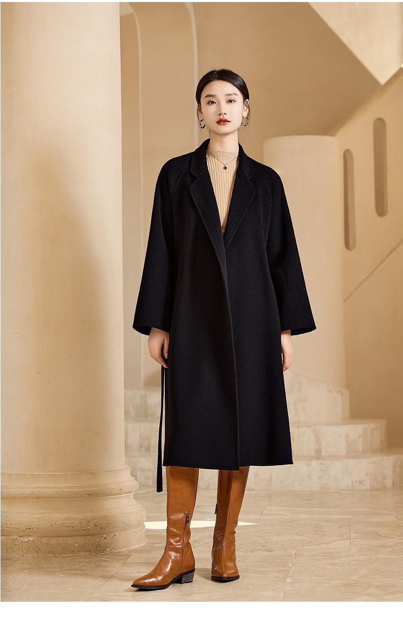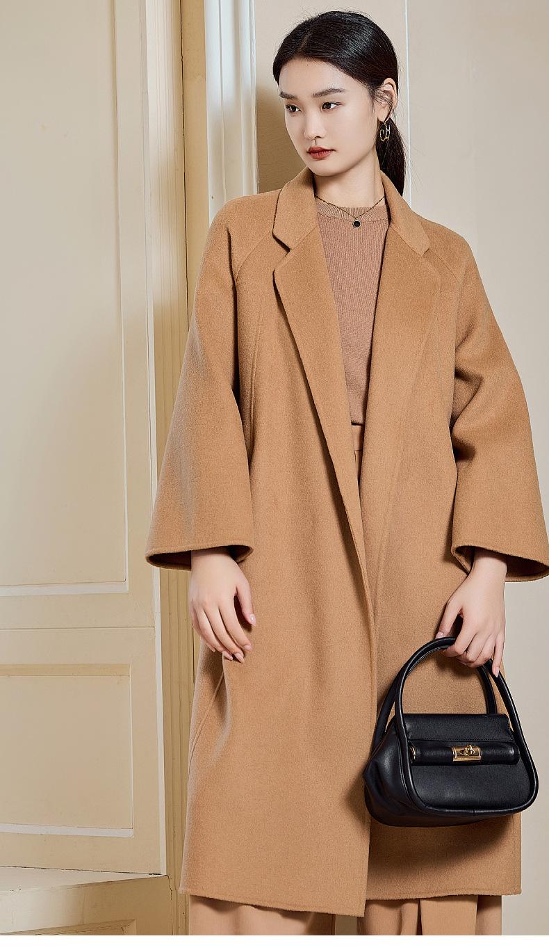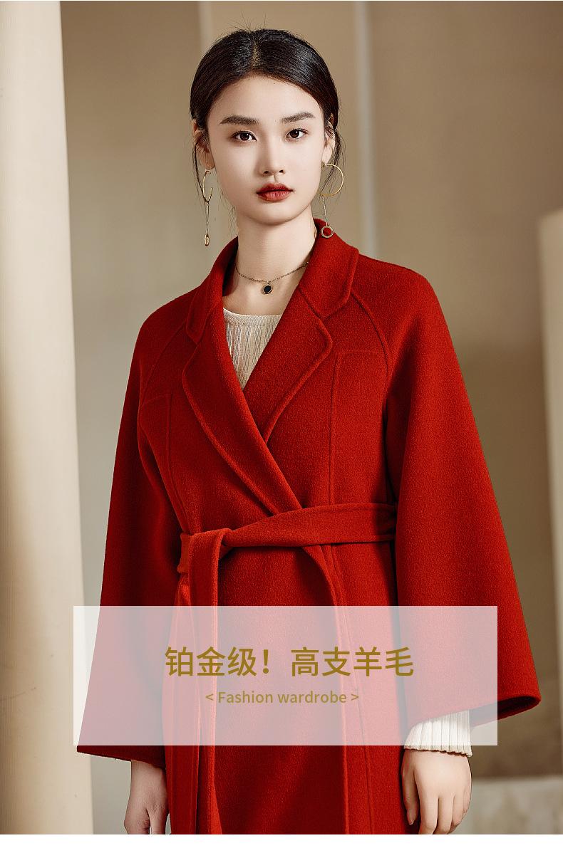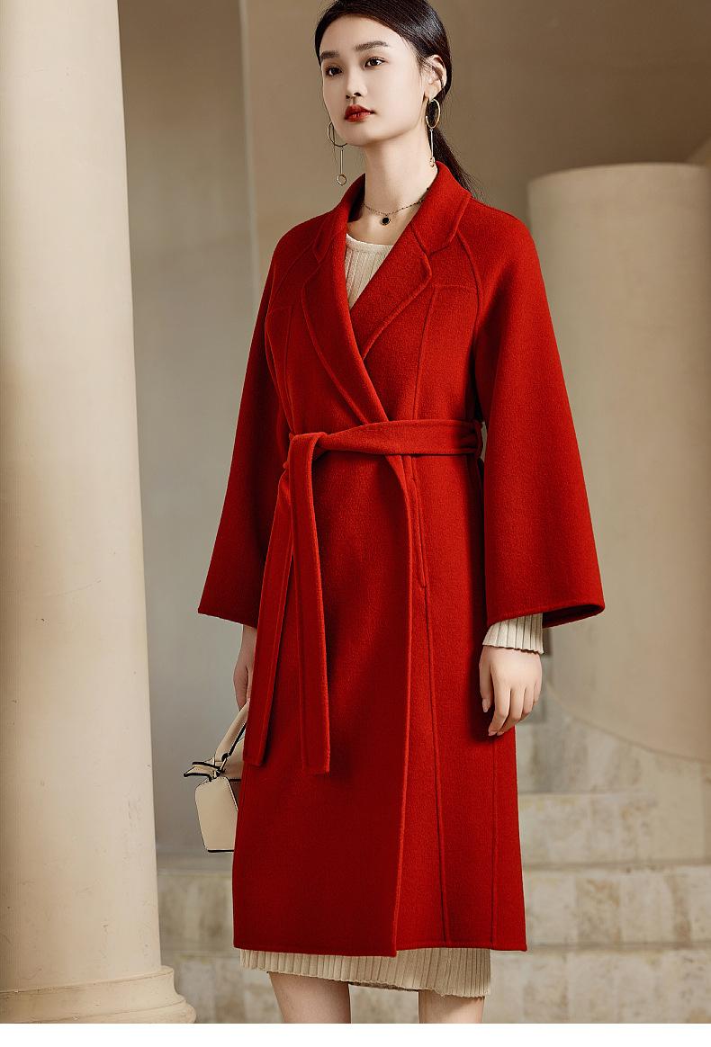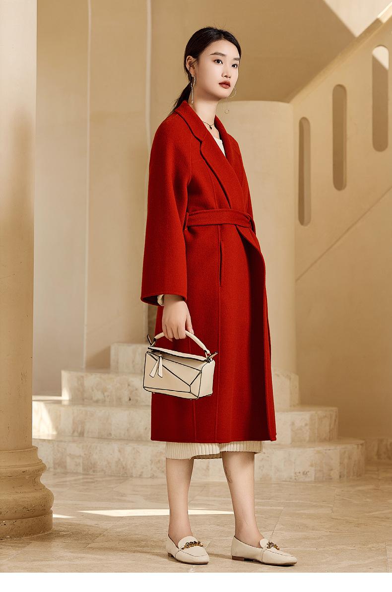 Casaco de Caxemira Lã de Alta Contagem Vermelho para Mulheres, Comprimento Médio, Outono e Inverno 2025, Casaco de Lã Solto Elegante