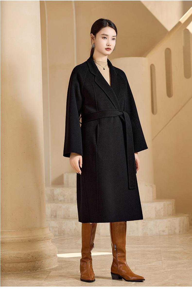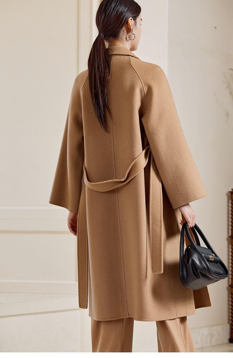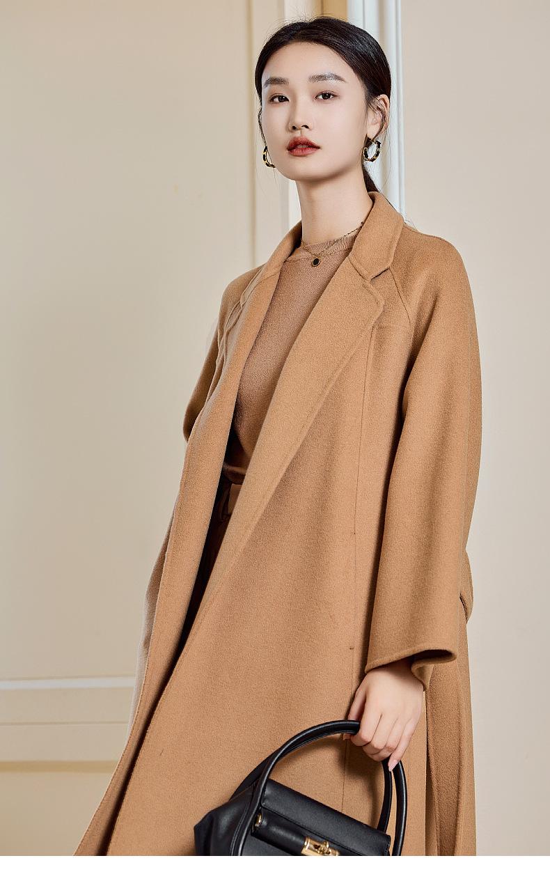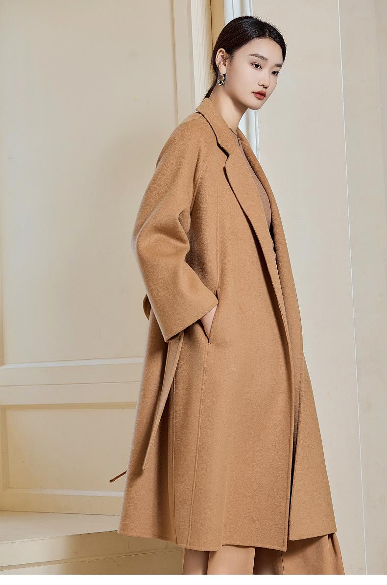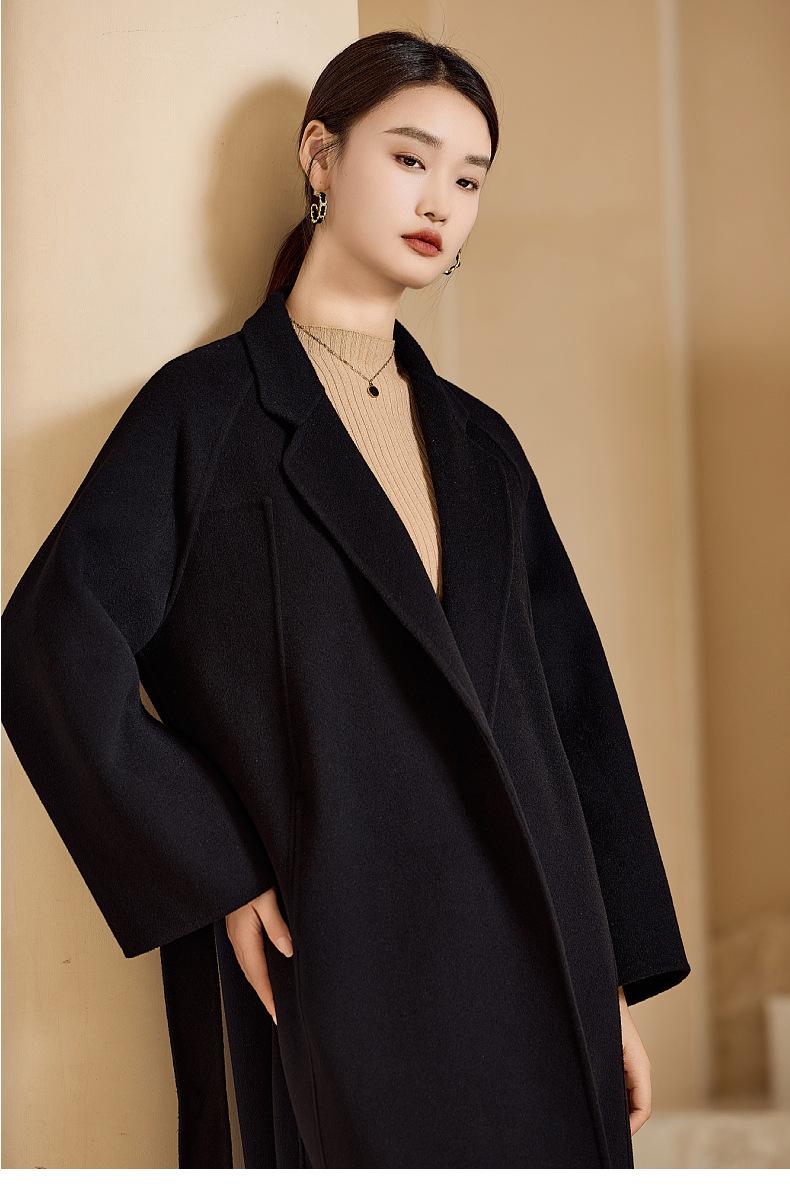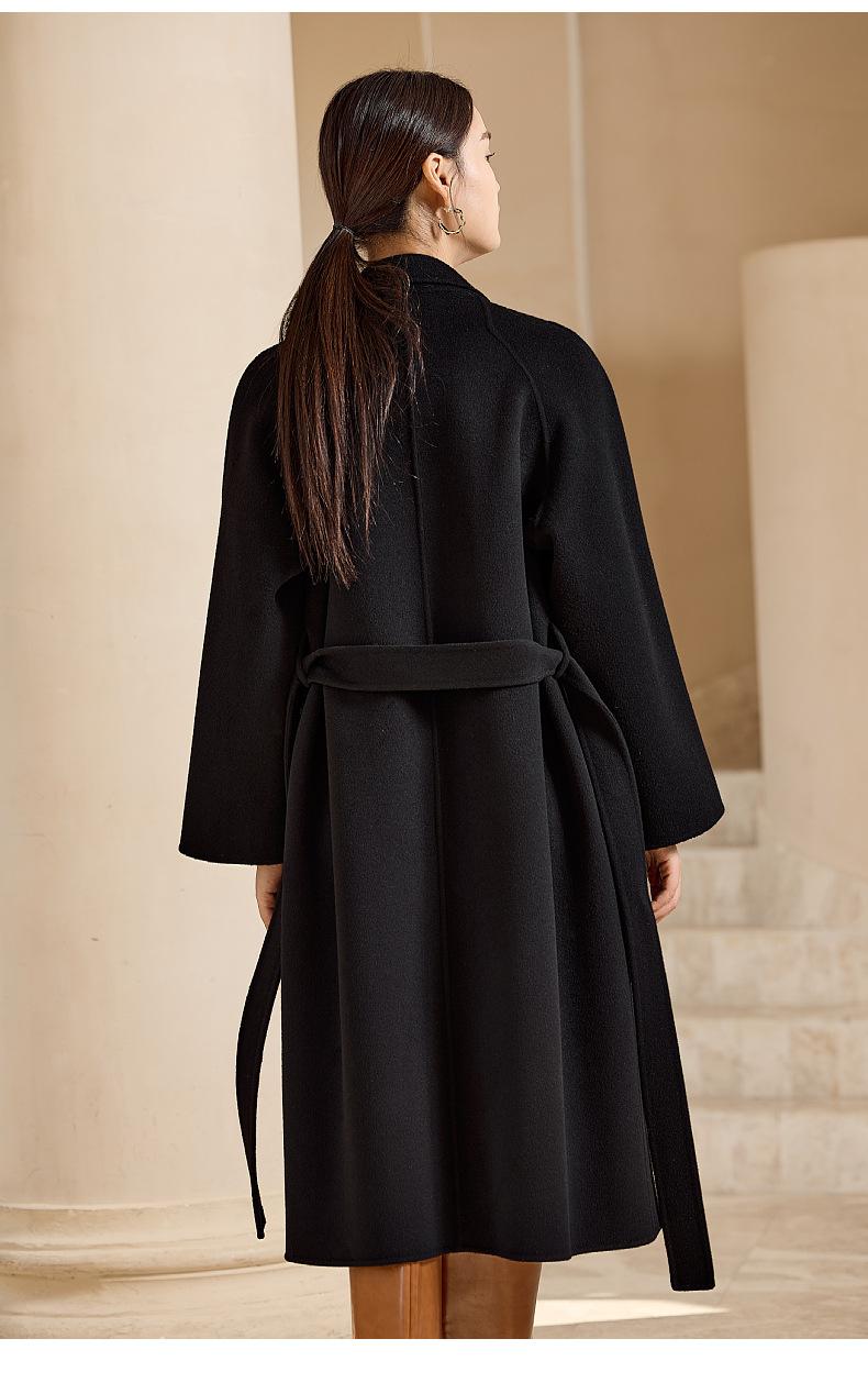 Casaco de Caxemira Lã de Alta Contagem Vermelho para Mulheres, Comprimento Médio, Outono e Inverno 2025, Casaco de Lã Solto Elegante