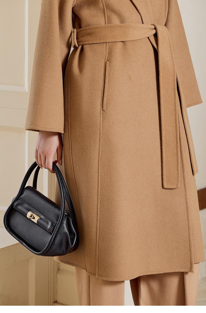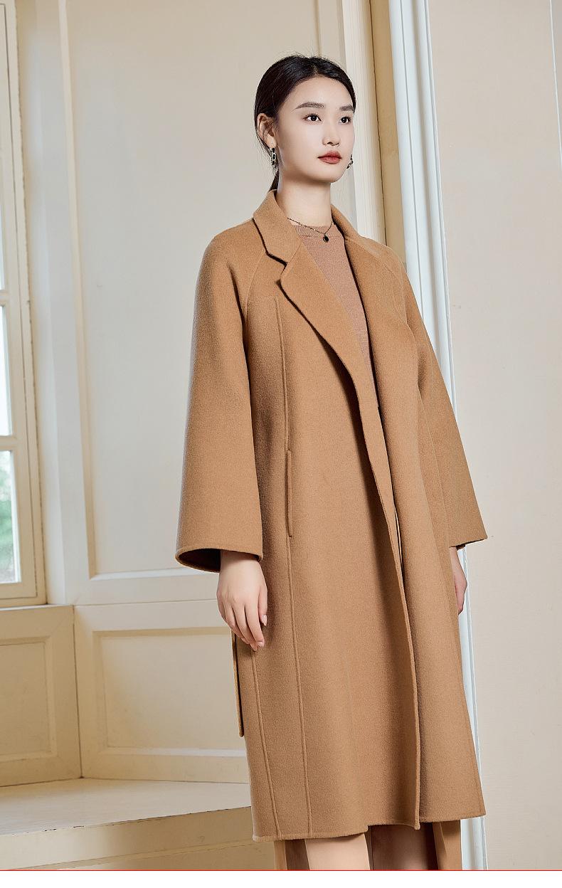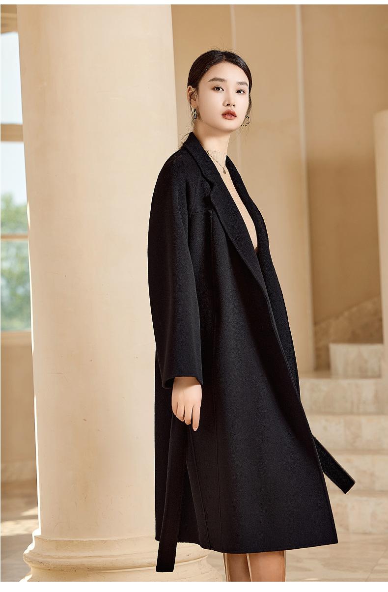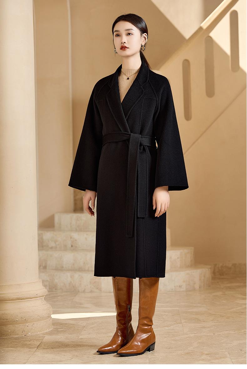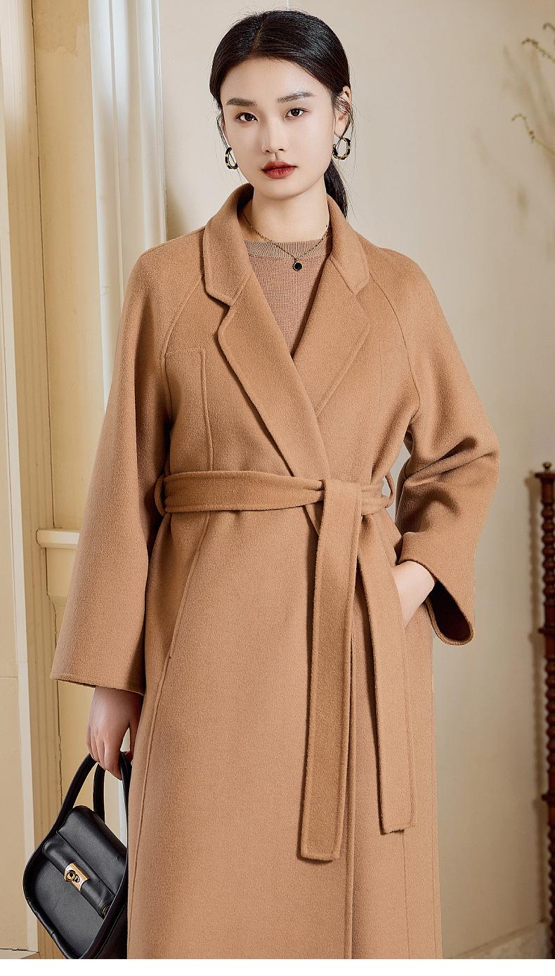 Casaco de Caxemira Lã de Alta Contagem Vermelho para Mulheres, Comprimento Médio, Outono e Inverno 2025, Casaco de Lã Solto Elegante