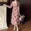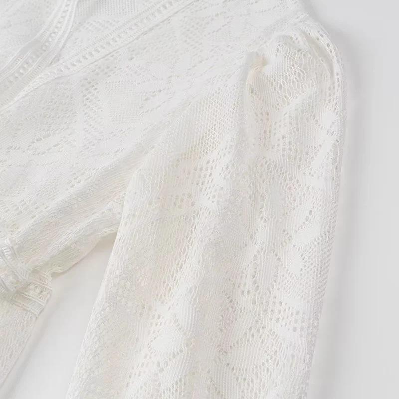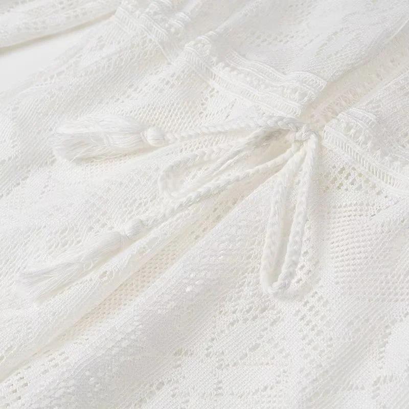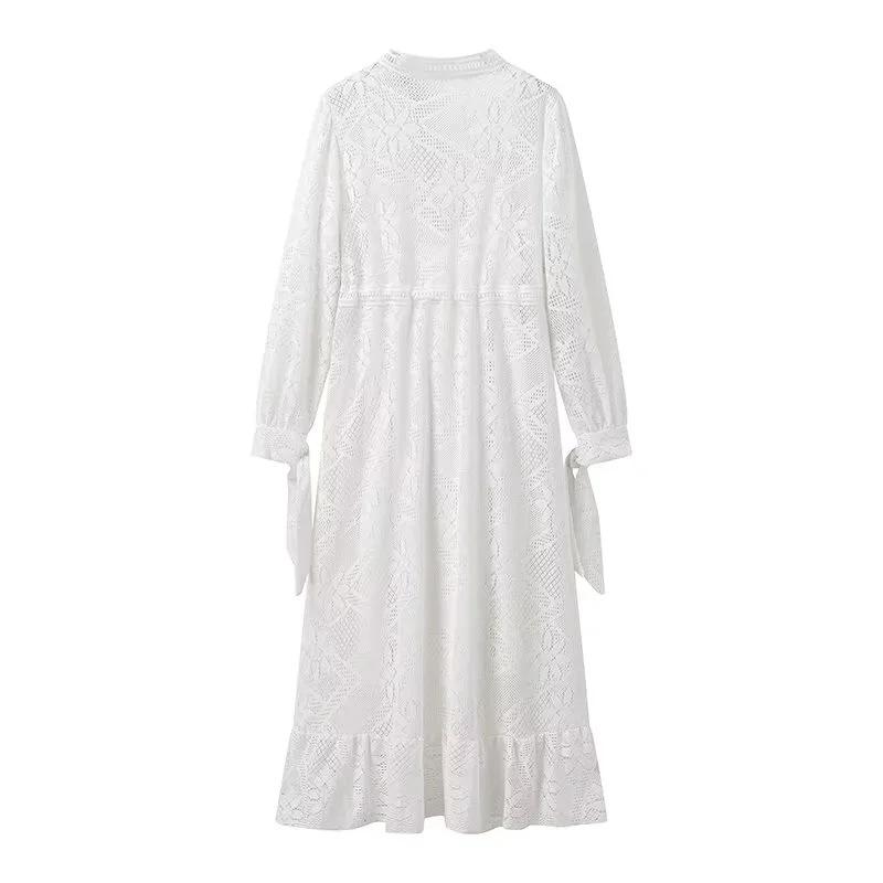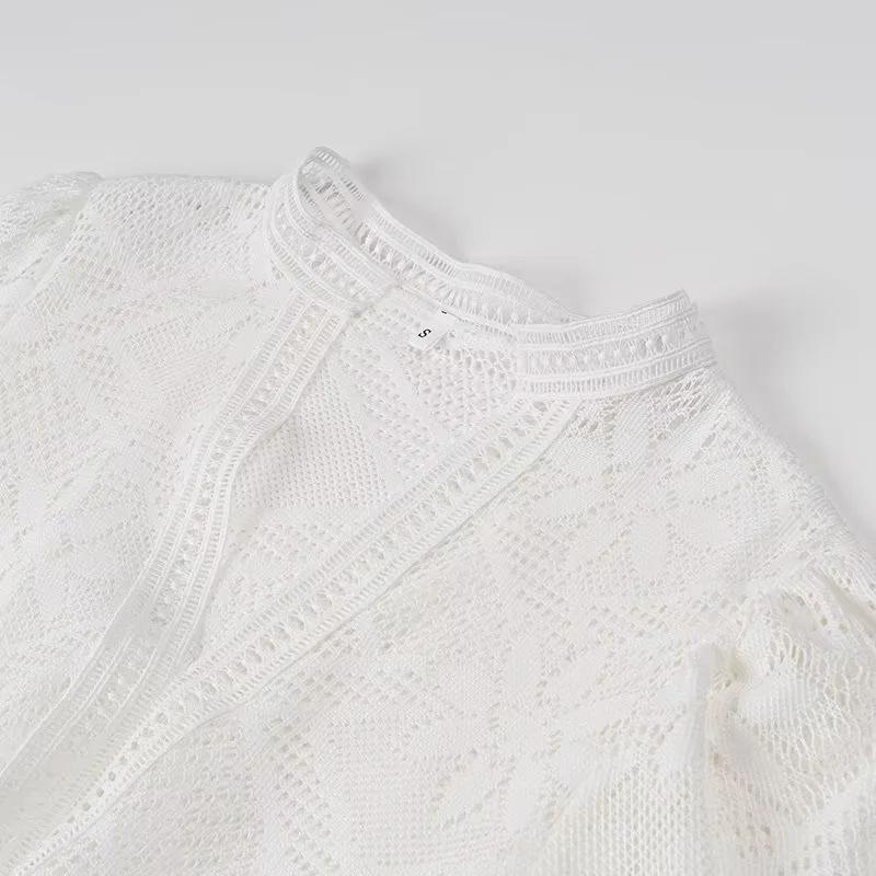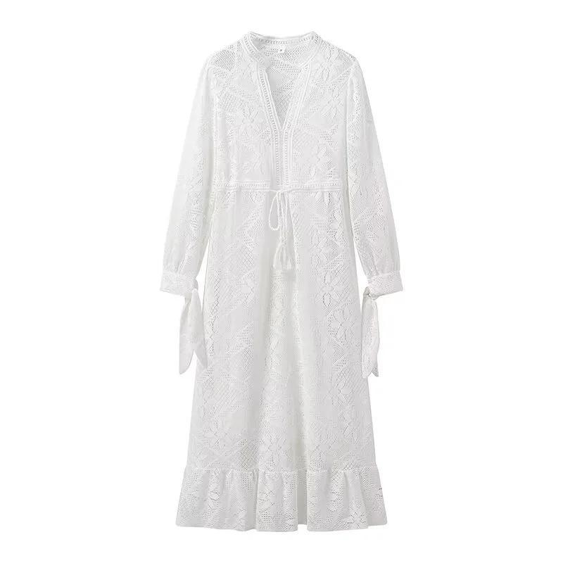 Cross-Border Europeu e Americano Vestuário Novo Chá Pausa Francês Solto Renda 2 Peças Manga Comprida Decote Em V Férias Super Bonito Vestido