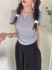 Novo ombro cruz V-neck base exterior vestir manga curta t-shirt feminina verão slim-fit moda slim-fit short top para as mulheres