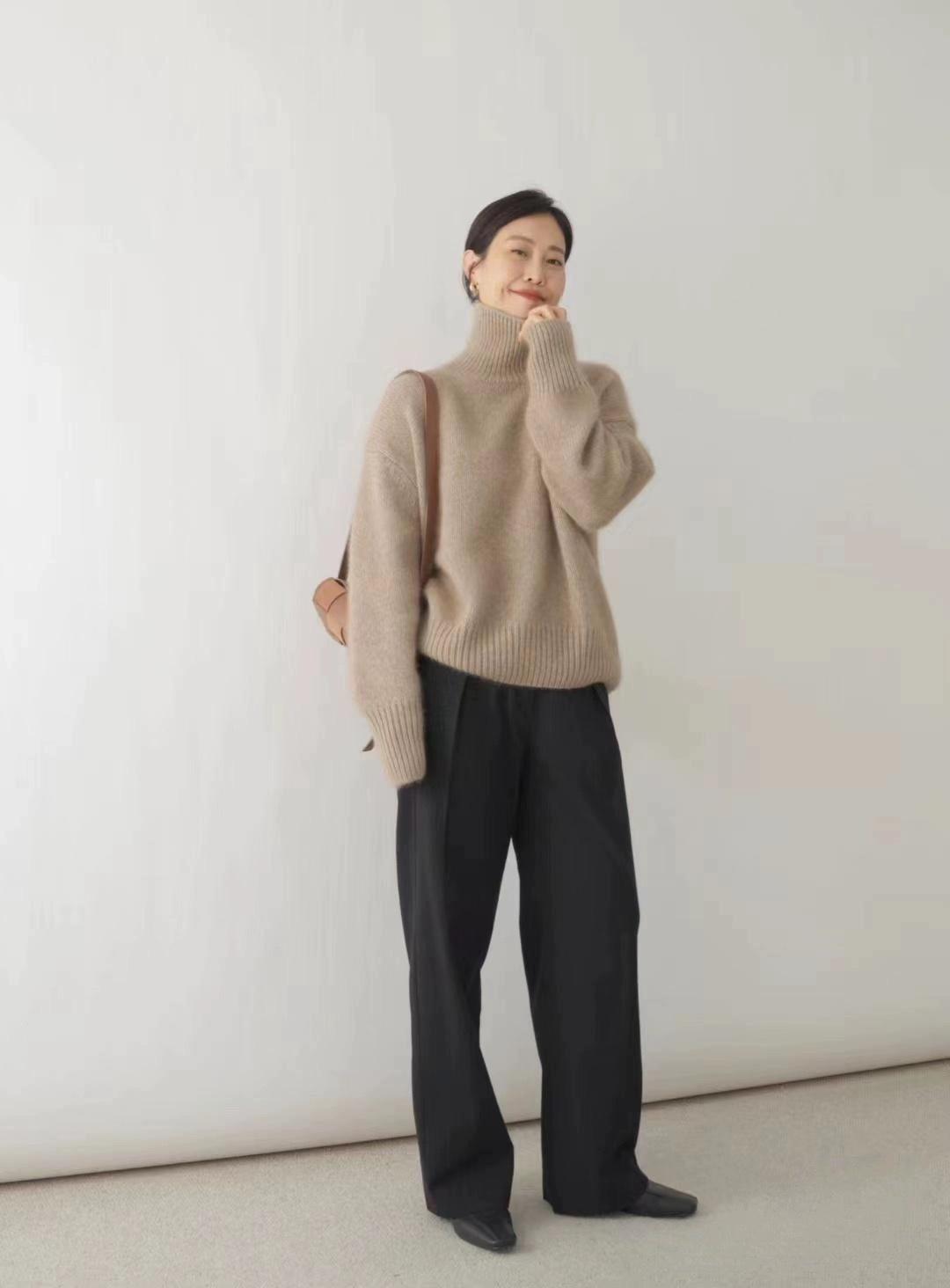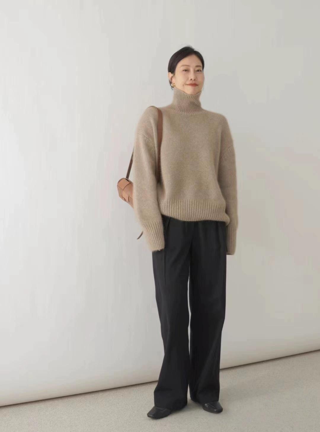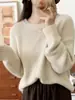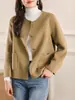 2023 outono e inverno Novo estilo coreano feminino lapela de lã pura manga comprida cor sólida roupas externas femininas solto suéter de lã feminina