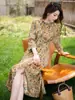 Rongtai elegante elegante fixo corante planta flor única camada amoreira seda vestido de seda mulheres renda-up slim vestido longo