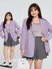 Runqi Plus Size Roxo Academia Anti-Rugas Sarja Drapeado Casual Conjunto 8235 Conjunto de Colete e Saia