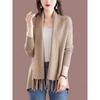 Preguiçoso estilo médio comprimento feminino puro cashmere cardigan casaco de malha com bolso solto emagrecimento outono e inverno Novo top solto