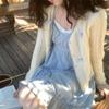 Estilo japonês damasco curto malha Cardigan suéter primavera e verão V-neck leite estilo Age-reduzindo Sweet Bow fino Cardigan para as mulheres