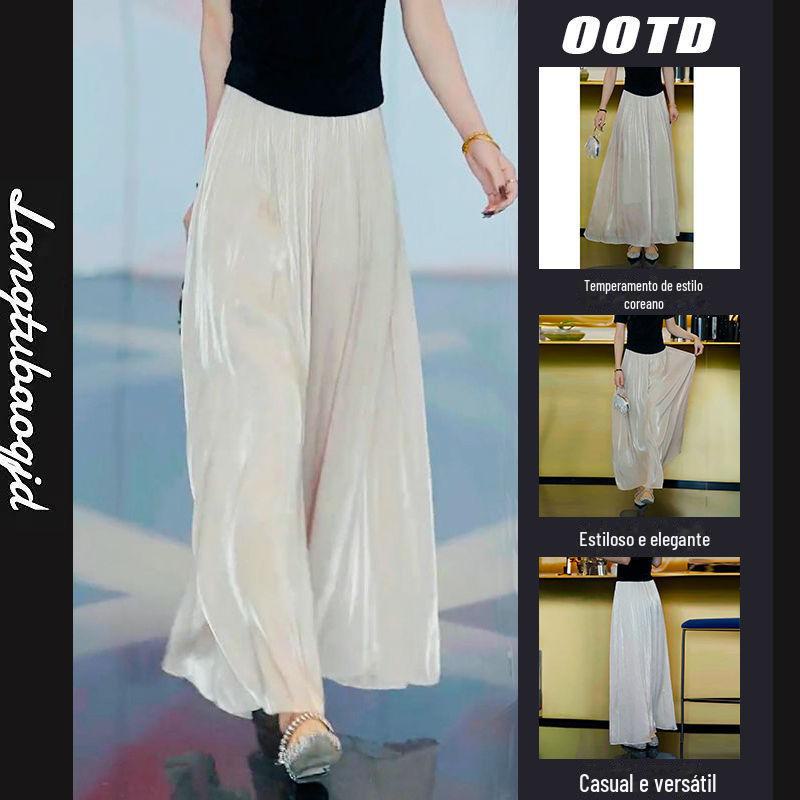 Calças de Perna Larga da Moda para Mulheres 2025 Primavera e Verão Novo Estilo Design Pregueado Preguiçoso Caimento Elegante Calças Culotes Finas