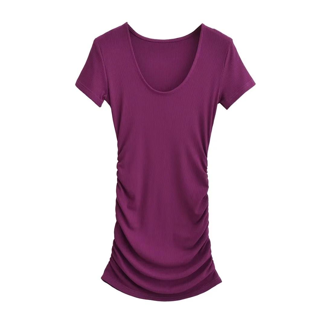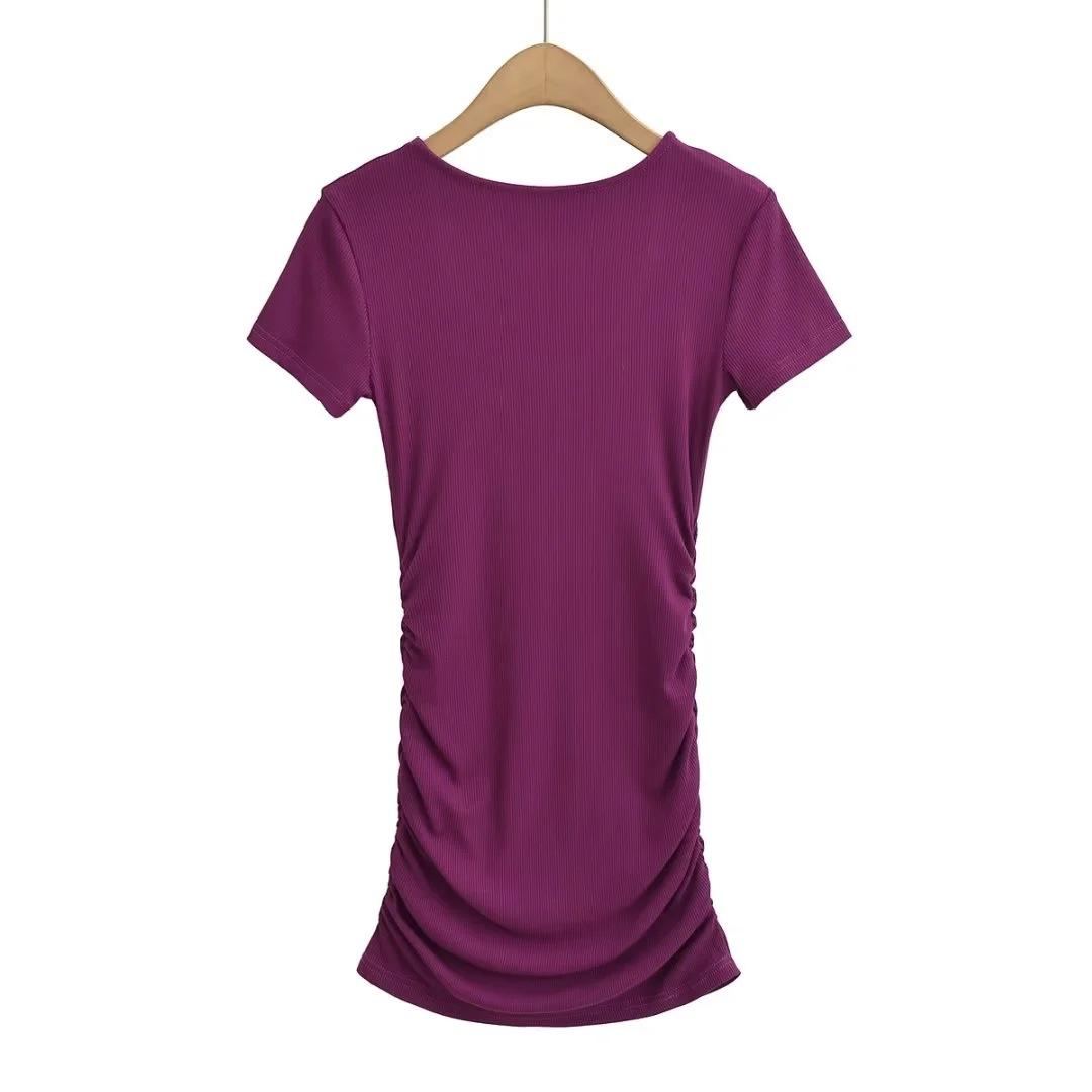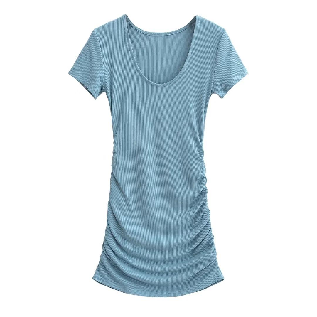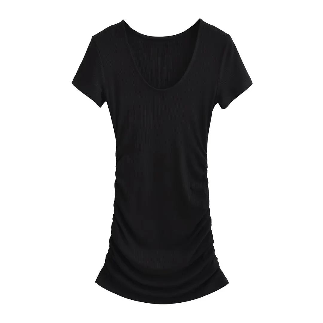 Deep U-neck sexy bainha plissada manga curta vestido feminino verão 2023 novo alto elástico slim emagrecimento saia quente menina