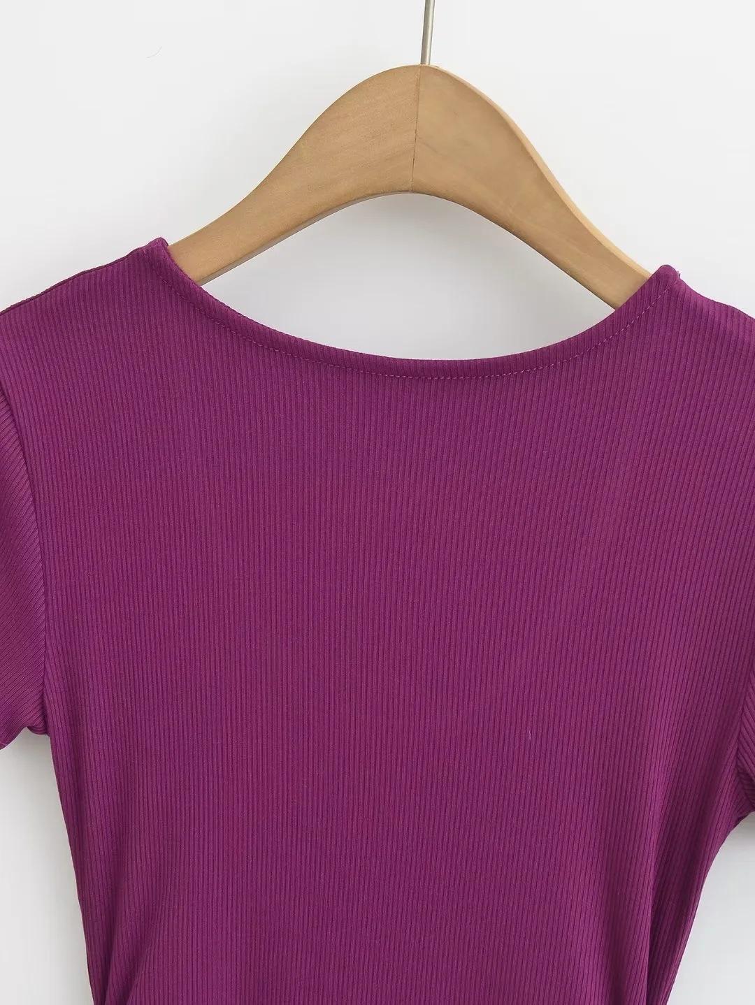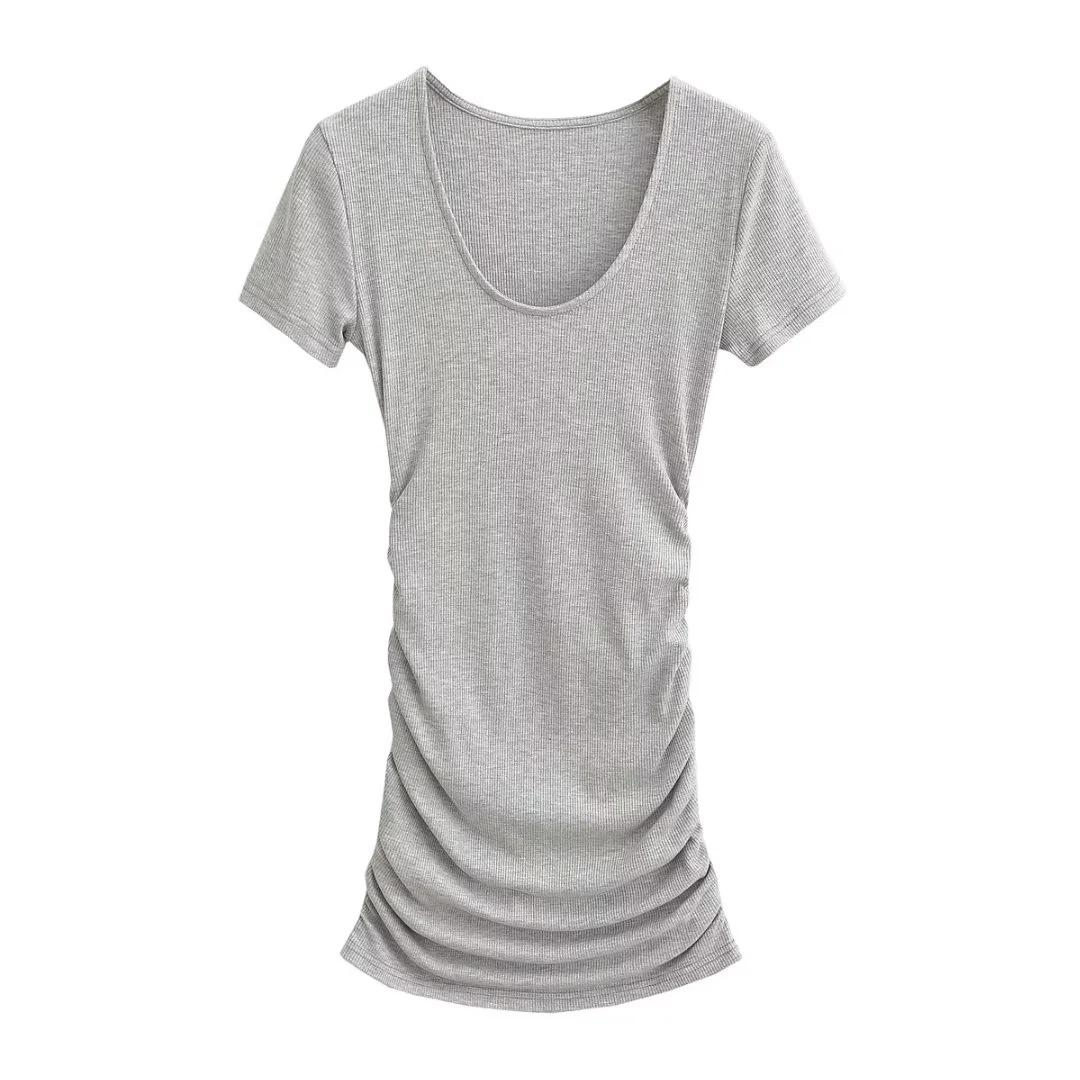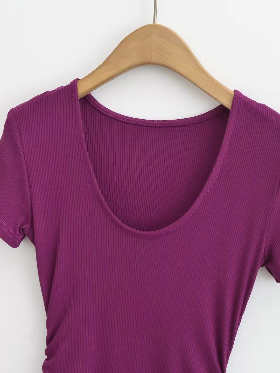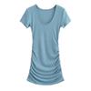 Deep U-neck sexy bainha plissada manga curta vestido feminino verão 2023 novo alto elástico slim emagrecimento saia quente menina