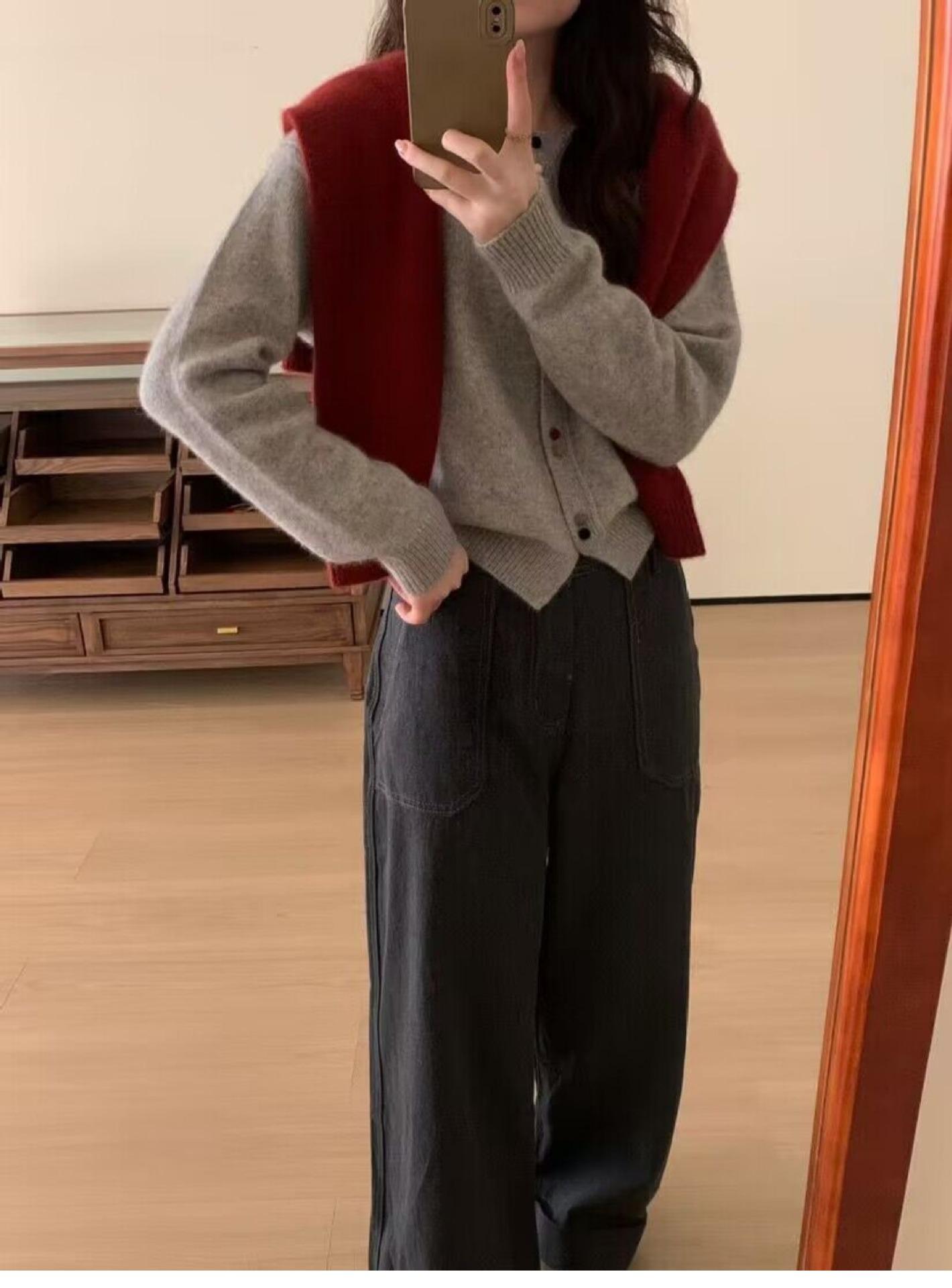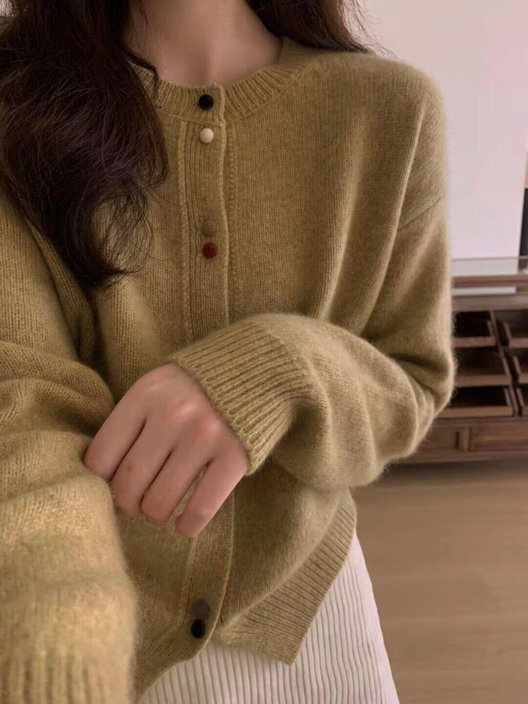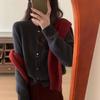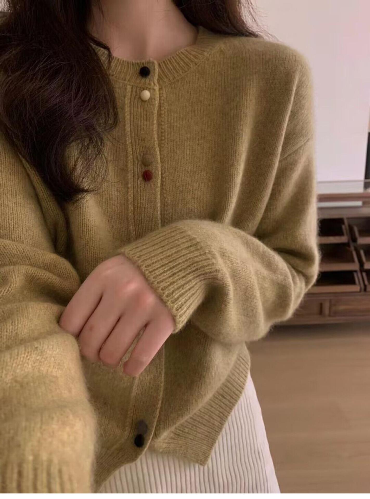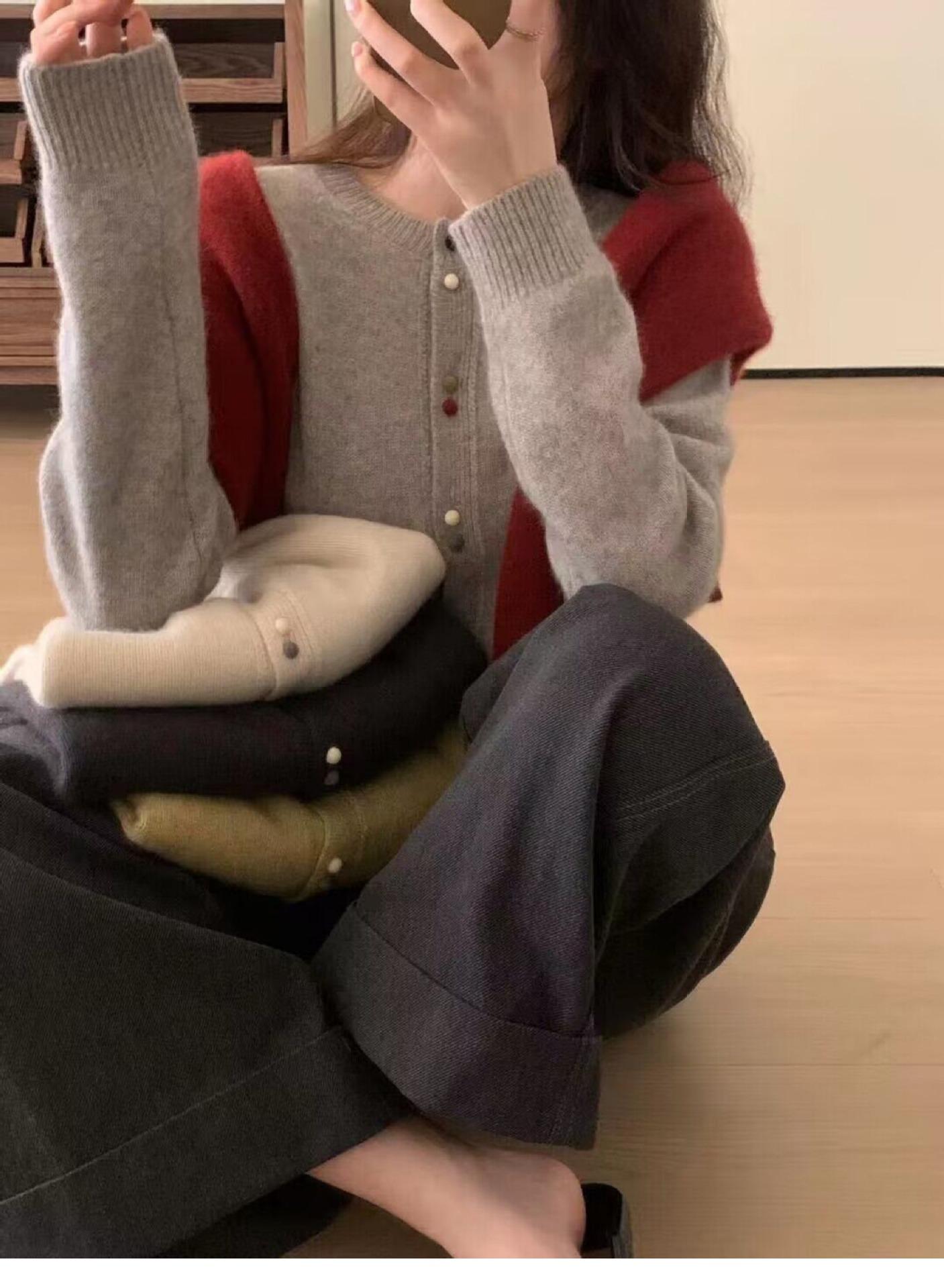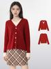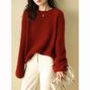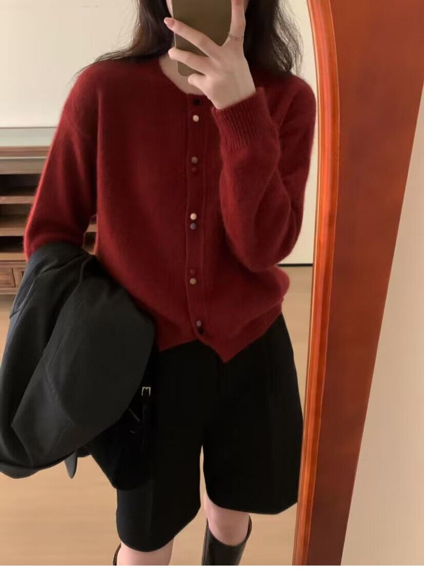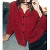 Cardigan Vermelho de Gola Redonda Vermelho de Ano Novo Cardigan Feminino Europeu Outono e Inverno Caxemira Solto Espessado Jaqueta Suéter Tricotada