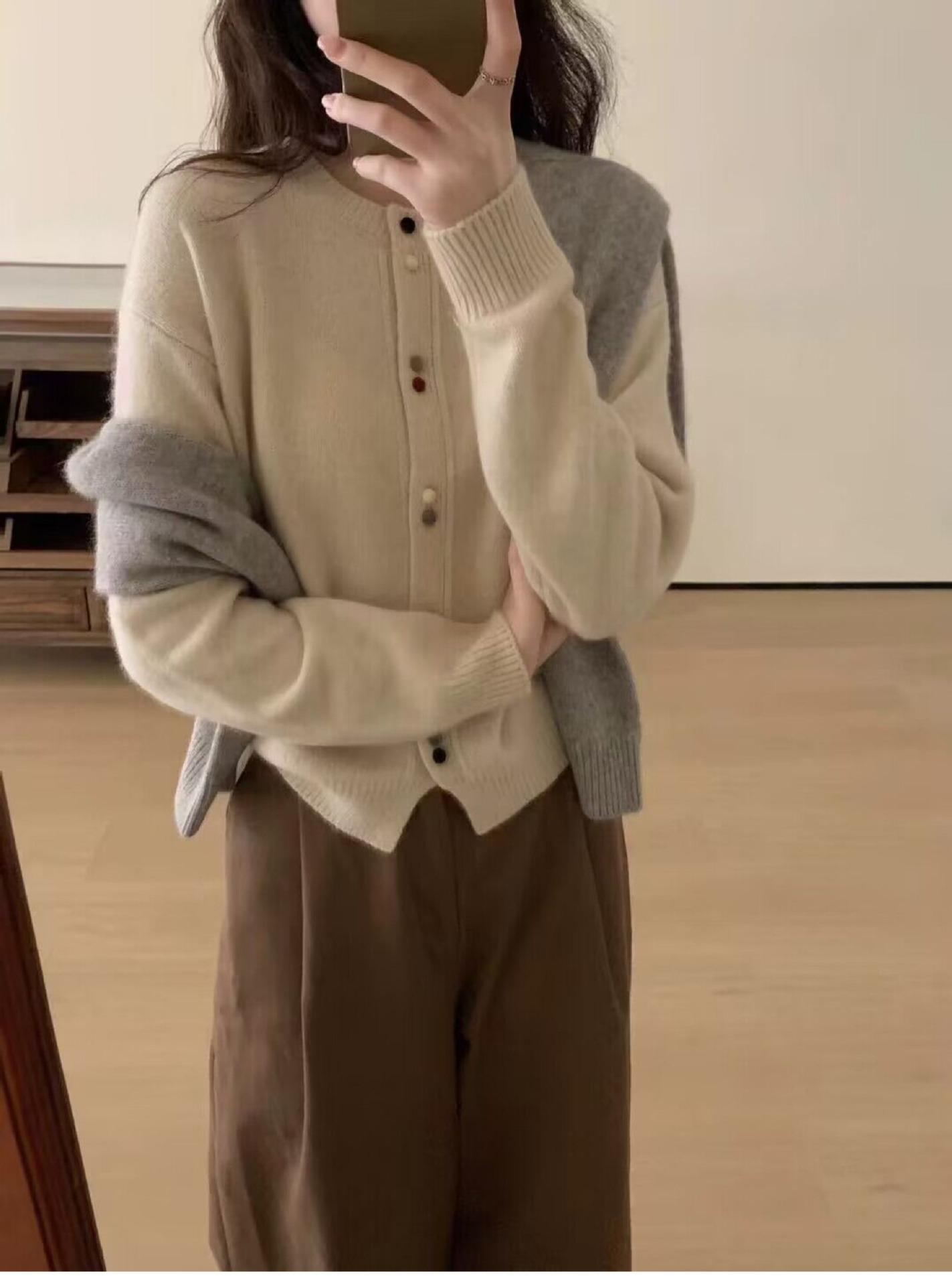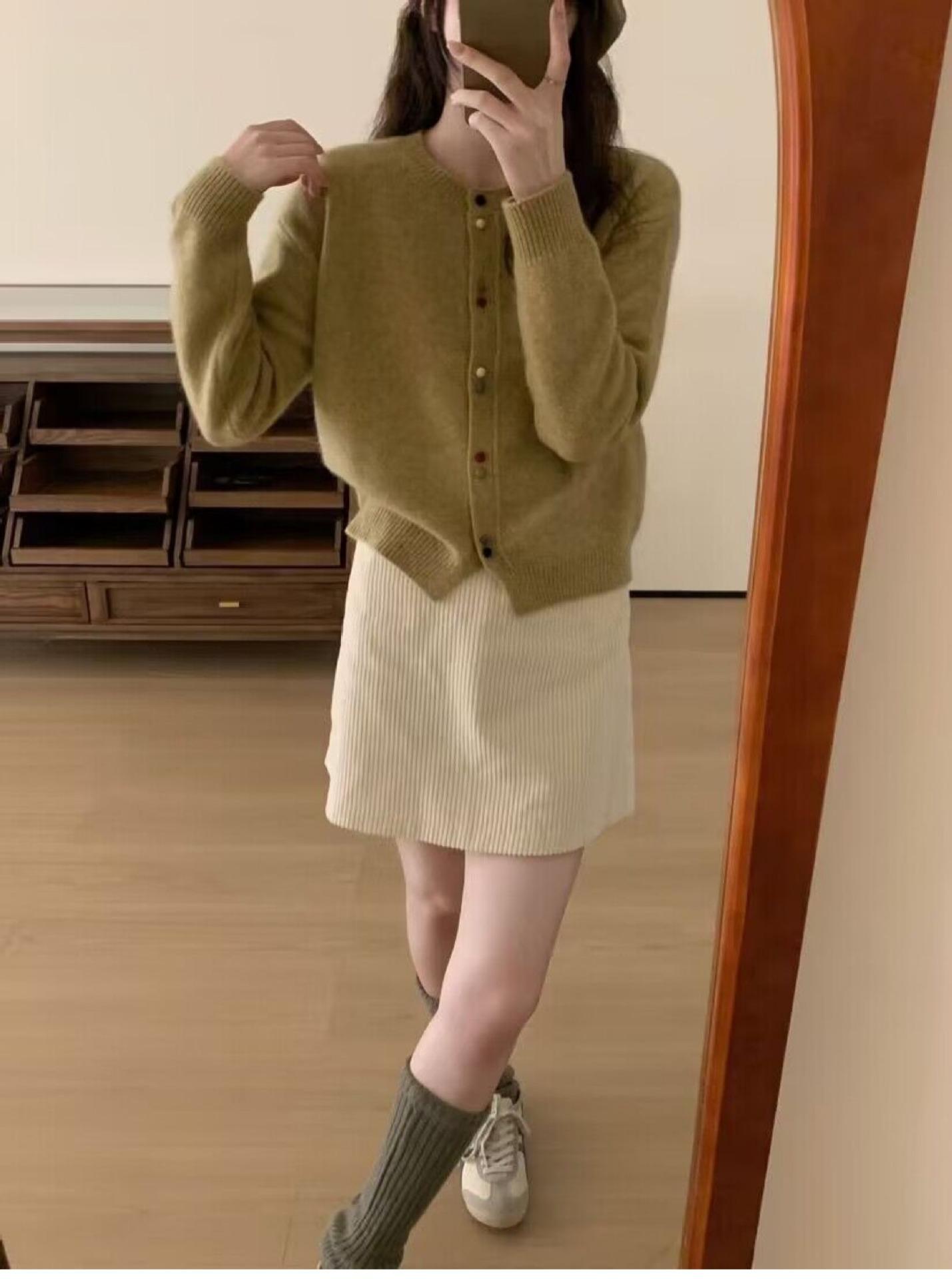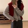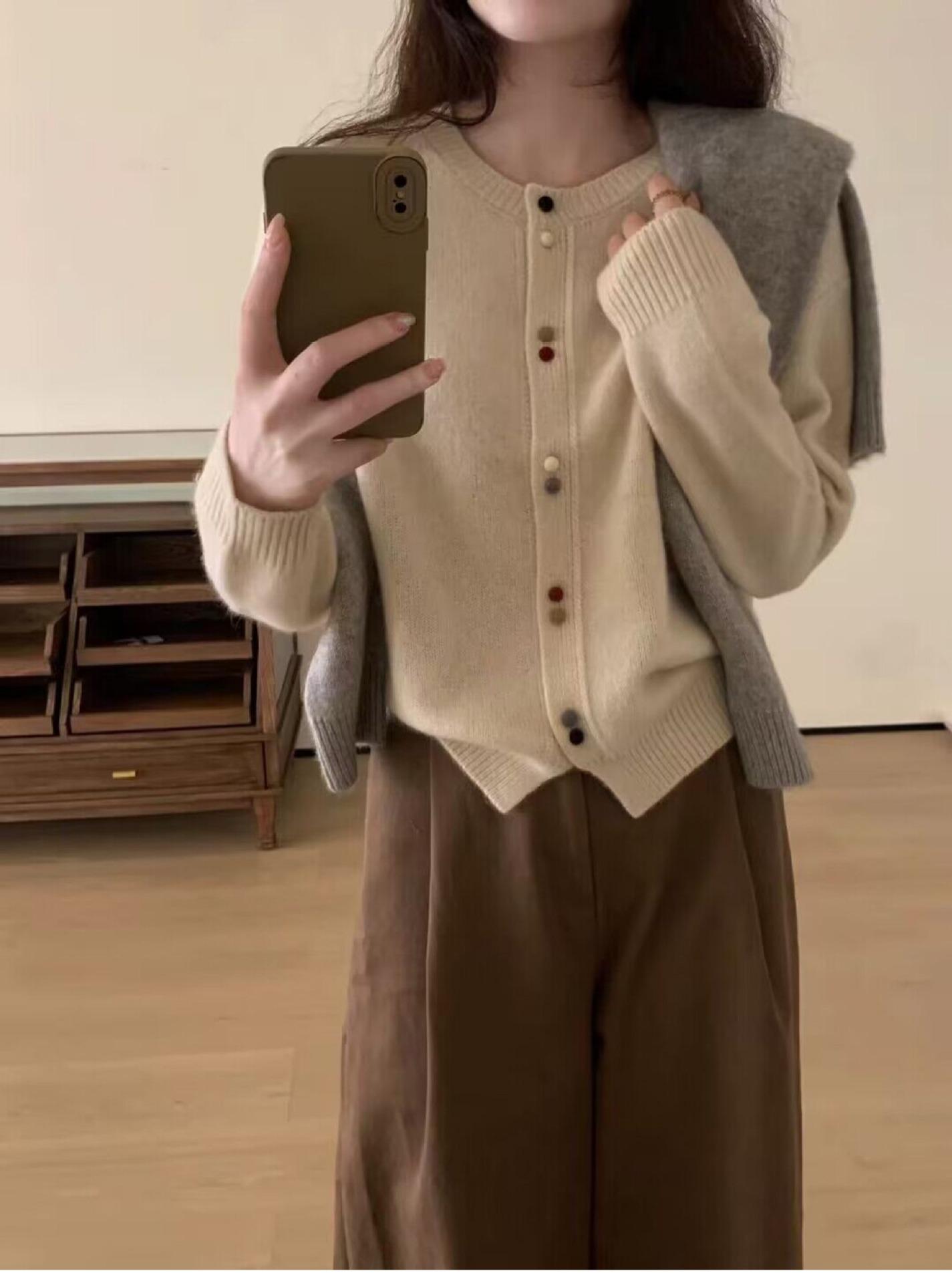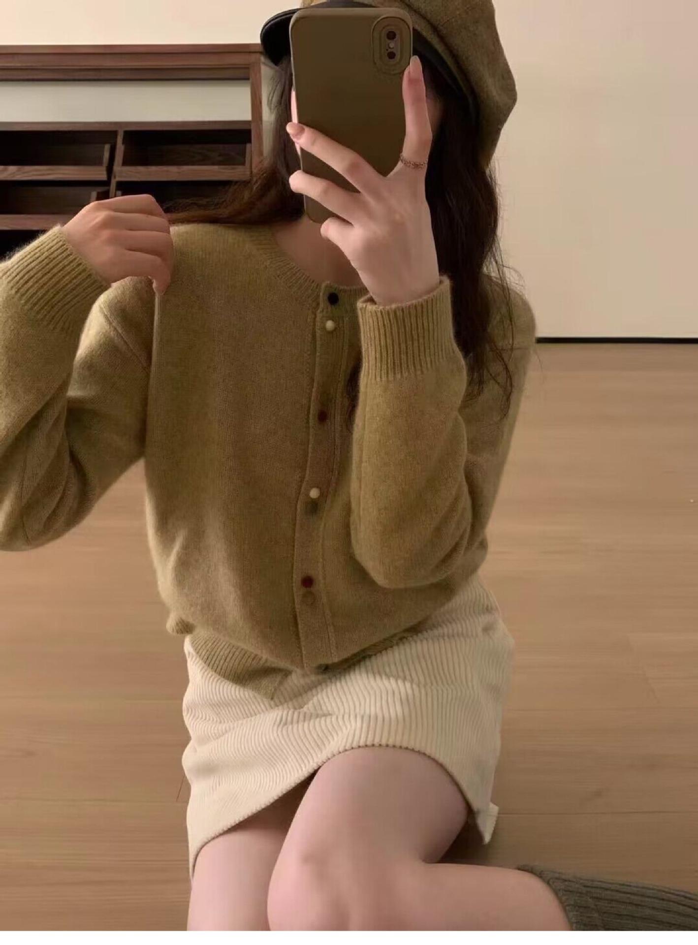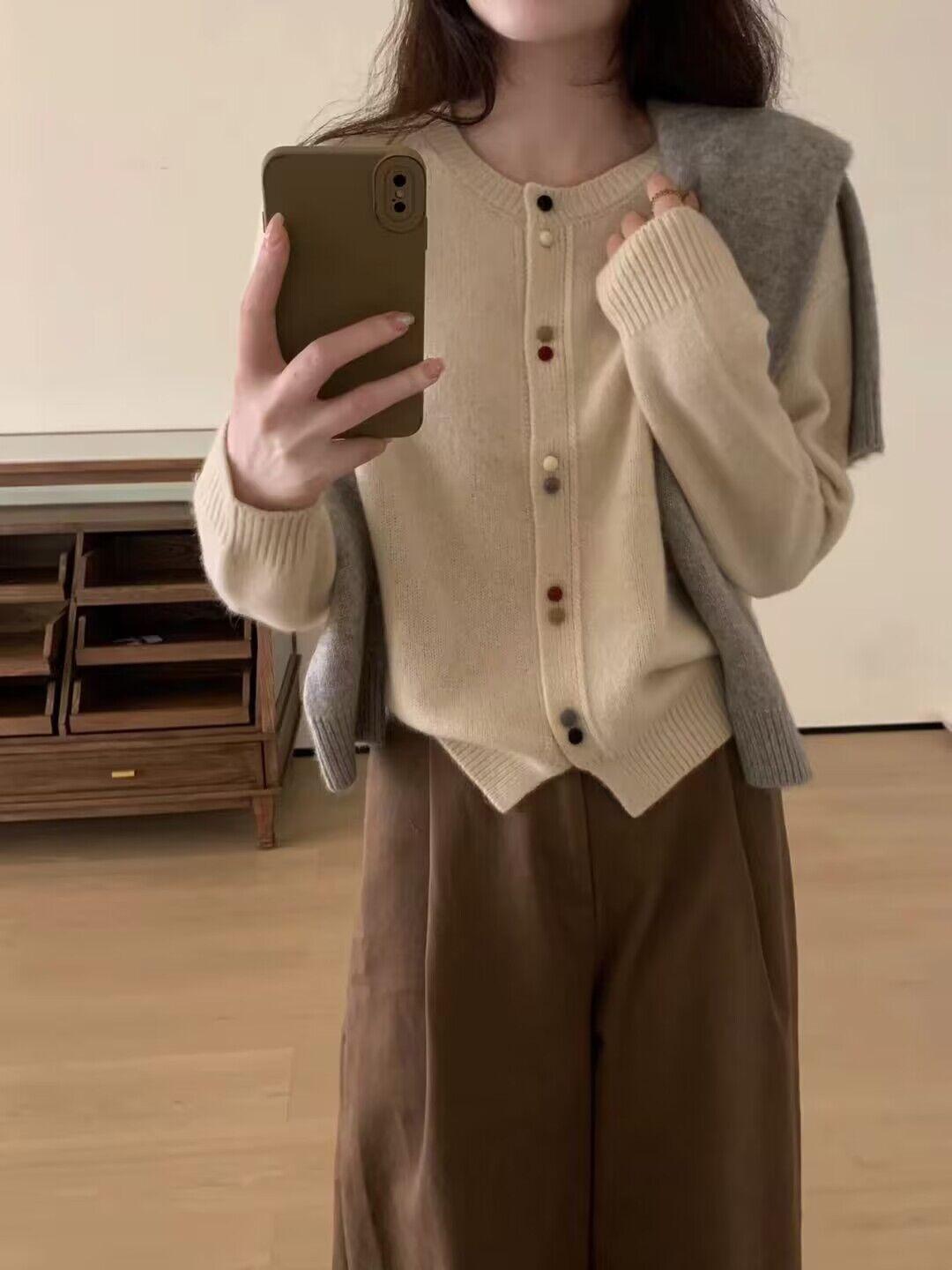 Cardigan Vermelho de Gola Redonda Vermelho de Ano Novo Cardigan Feminino Europeu Outono e Inverno Caxemira Solto Espessado Jaqueta Suéter Tricotada