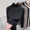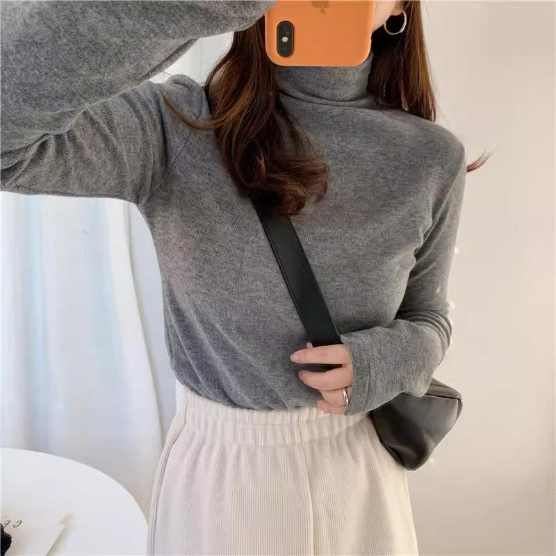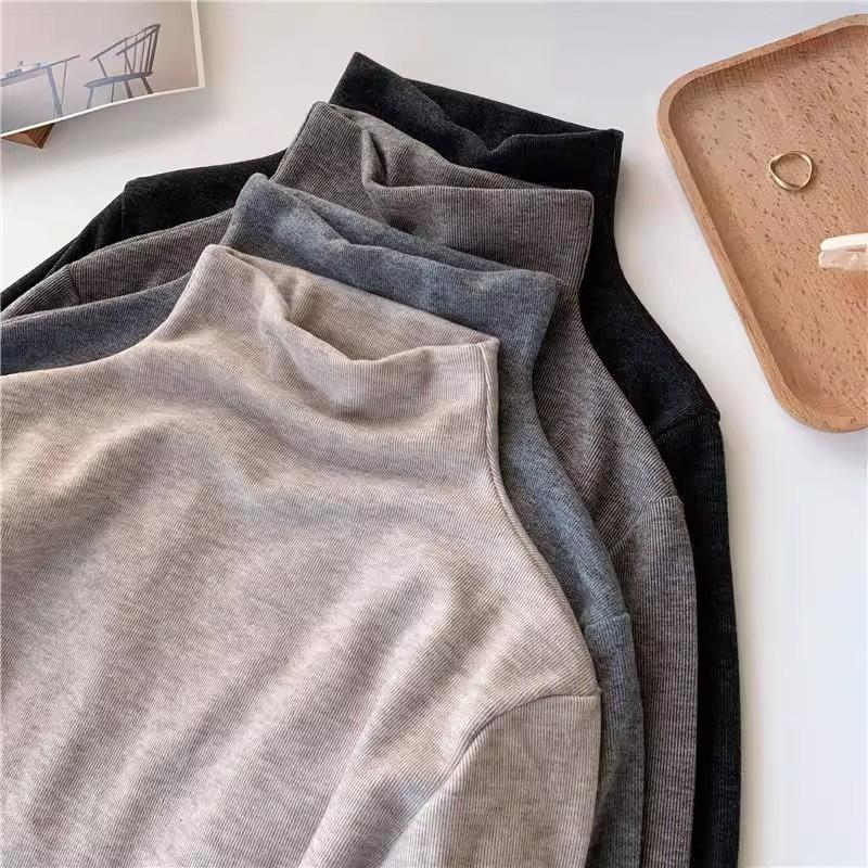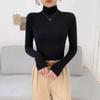 Camisa feminina de veludo de gola alta outono e inverno Nova camiseta versátil de manga comprida slim-fit engrossada top in quente