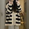 Jaqueta Suéter Japonês Retrô Estilo Preguiçoso Outono/Inverno 2026 para Mulheres com Design Francês Jaqueta Cardigan de Tricô Listrada