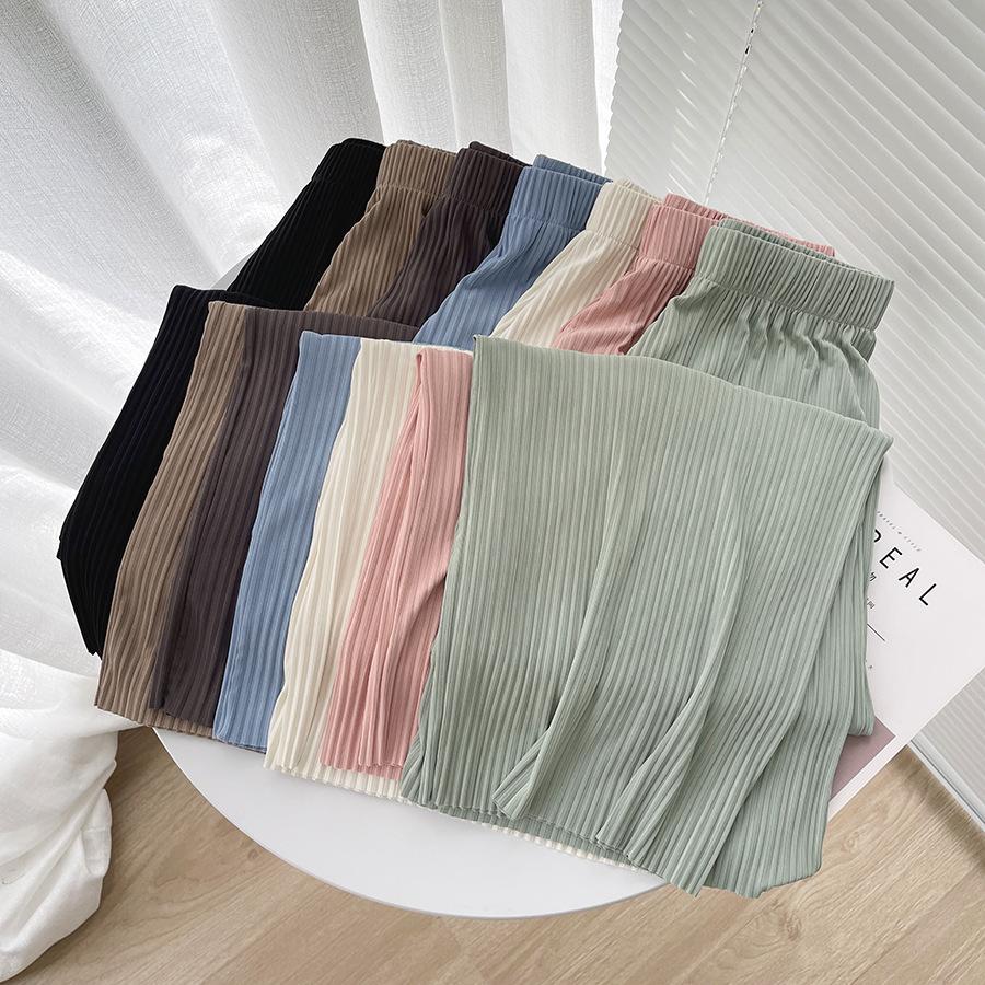 2025 Primavera e Verão Calças Largas de Seda Gelo Respiráveis e Caídas Novas Calças Finas Protetoras Solares de Perna Reta Estilo Casual Calças Frescas