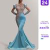2025 Nova Saia Azul Claro Diária Cauda de Peixe Banquete Longo Série Ouro Areia Temperamento Slim Vestido de Noite para Reunião Anual para Mulheres