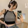 Drop-cintura superior coreano-estilo estilo coreano contraste padrão geométrico tricotado curto quente menina sling mulheres colete pequeno roupas femininas curtas