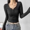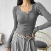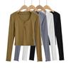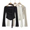 T-shirt de manga comprida estilo europeu e americano decote baixo para mulheres 2023 outono novo hot girl slim bottoming shirt slim top