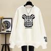 Suéter de pescoço redondo de algodão dos desenhos animados para mulheres 2023 outono e inverno forrado de lã engrossado moda casual estilo preguiçoso solto plus size roupas femininas