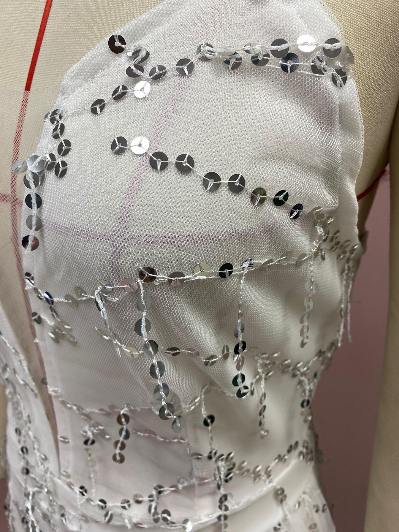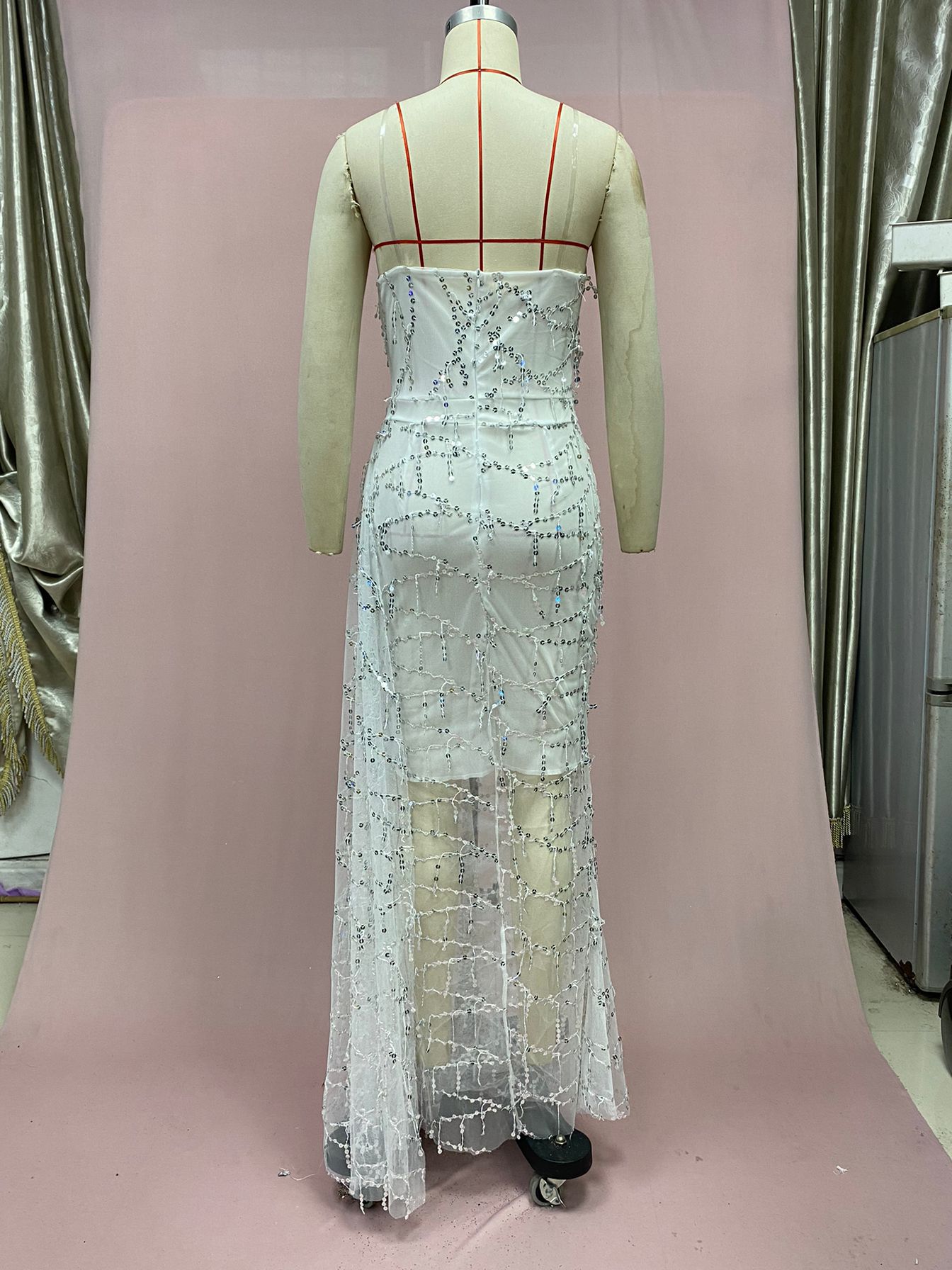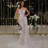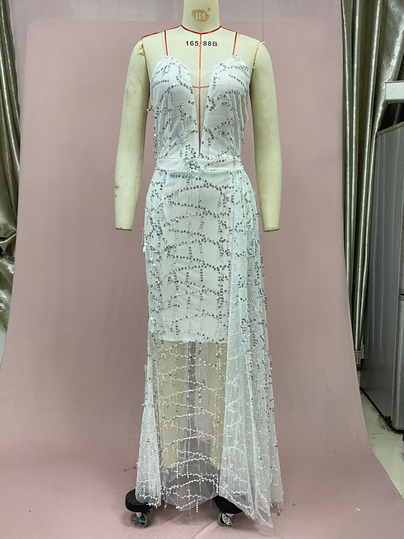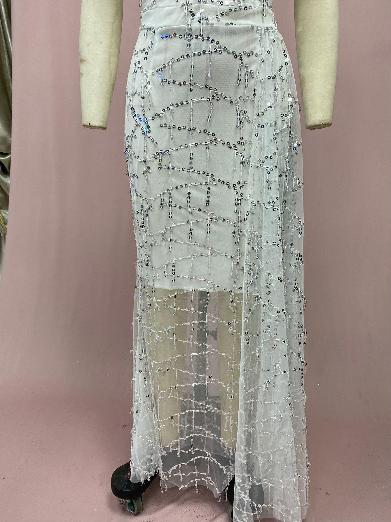 2025 Verão Transfronteiriço Novo Vestido Europeu e Americano de Alças Sexy Decote V Prata Quente Moda Vestido Sexy de Noite