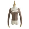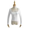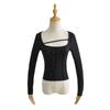 Primavera nova moda feminina europeia e americana costurando manga comprida slim t-shirt top C11711