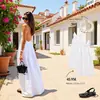 Vestido feminino de verão, novo, estilo europeu e americano, com decote em V, cor sólida, sem costas, combinando