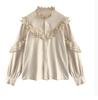 Compre 2023 Primavera Nova Chegada Camisa Estilo Francês Mulheres Retrô Lanterna Manga Doce Renda Pescoço Redondo Camisa Emagrecedora Solta no atacado no Joom.pro