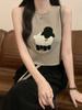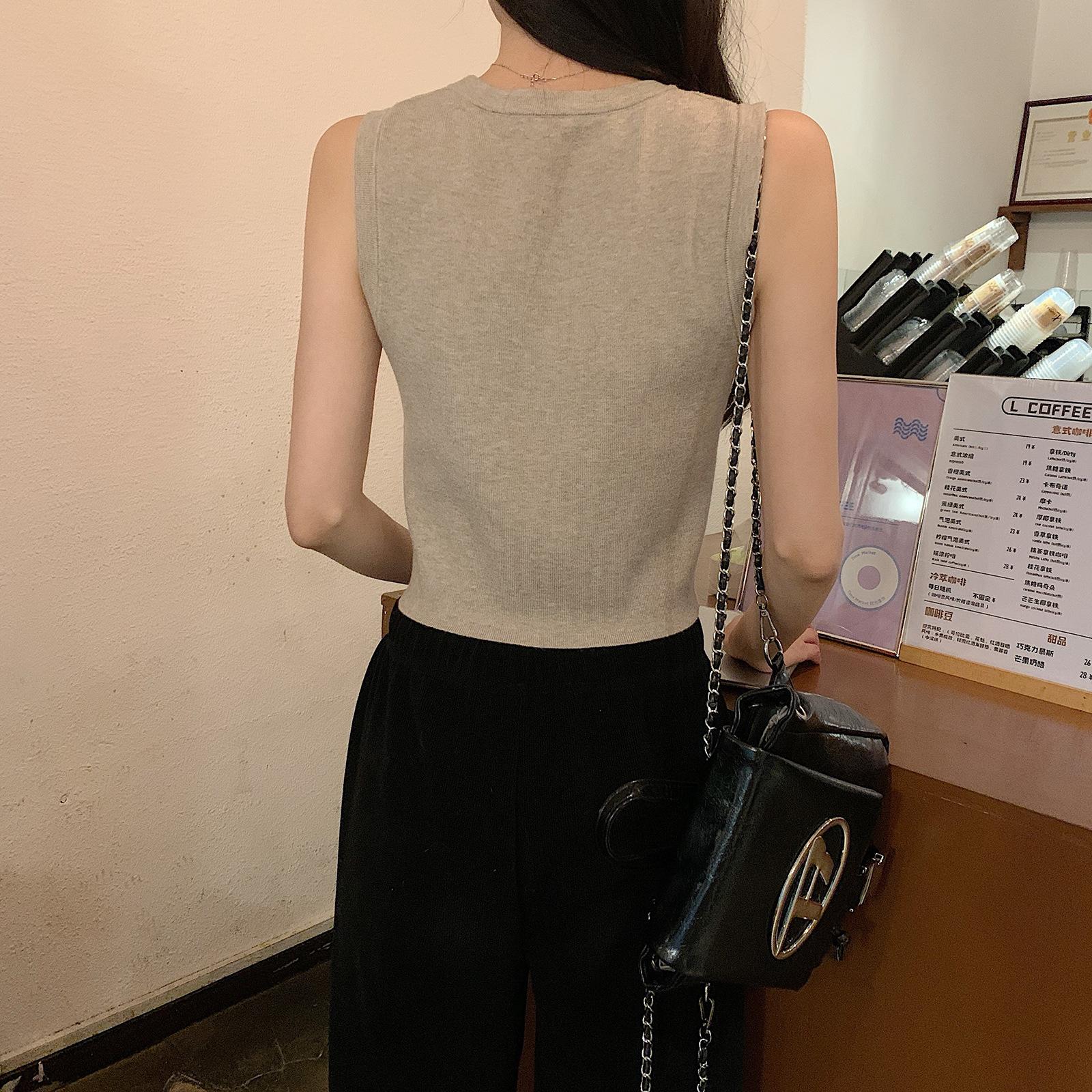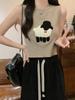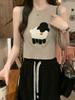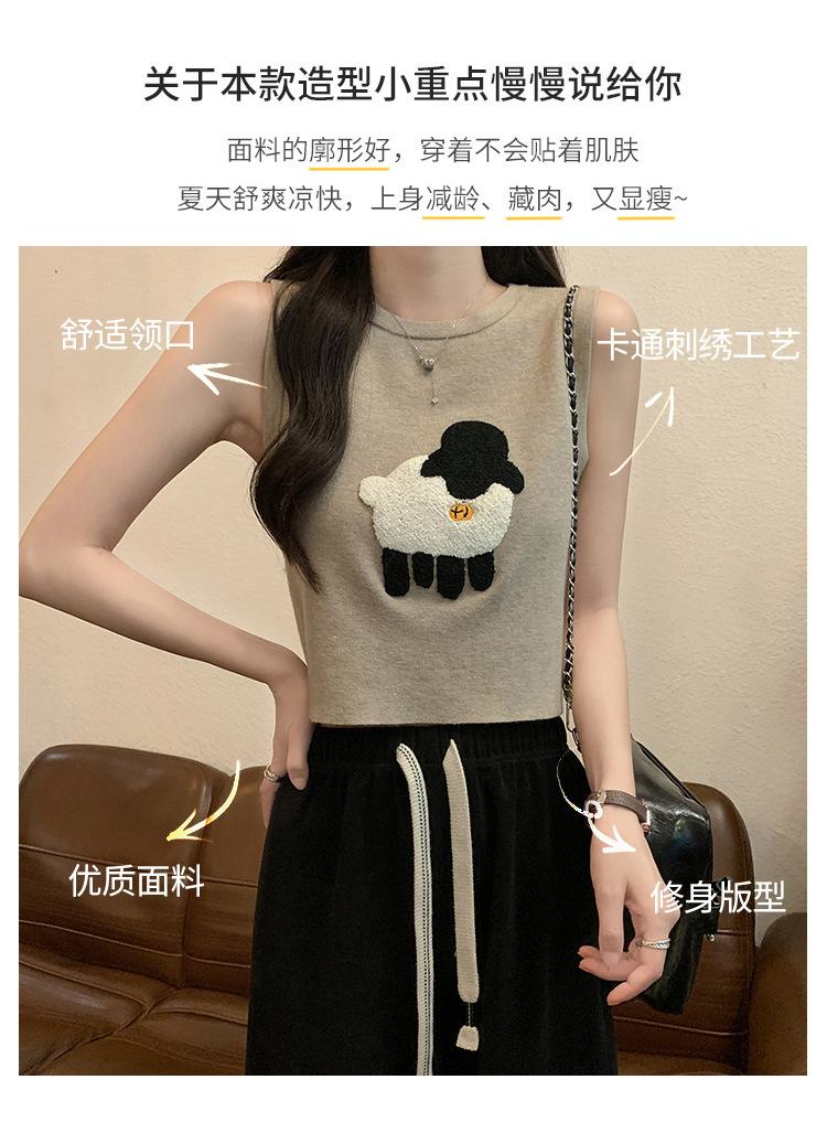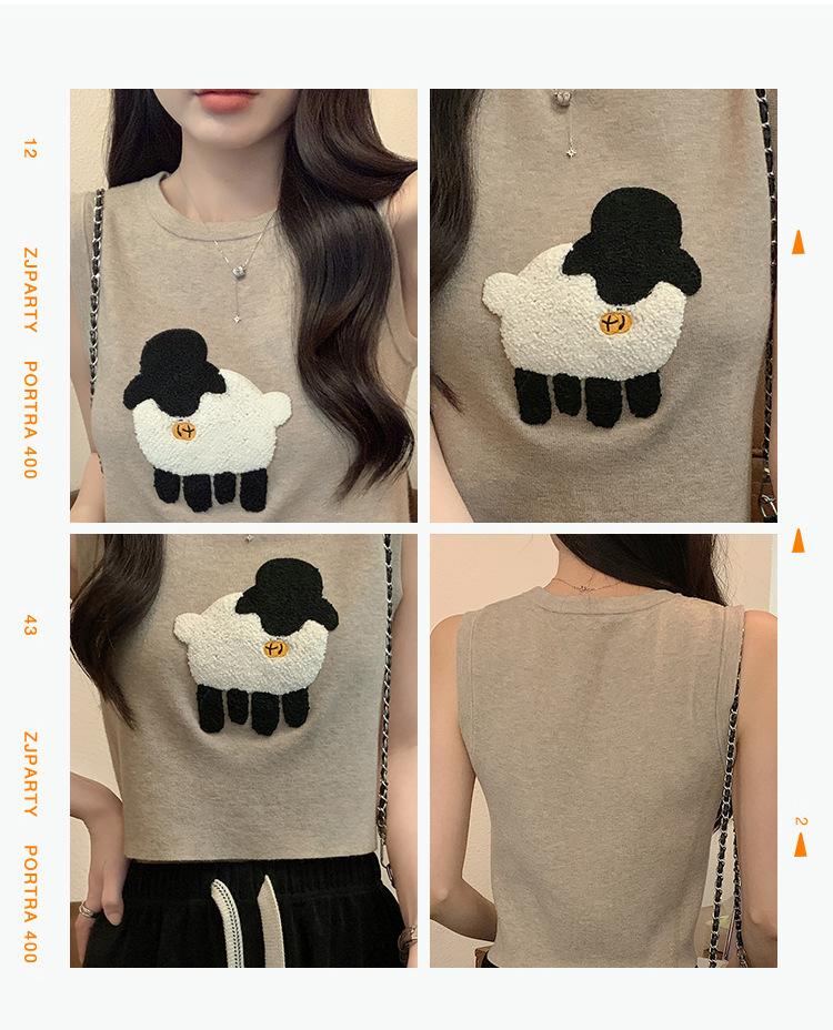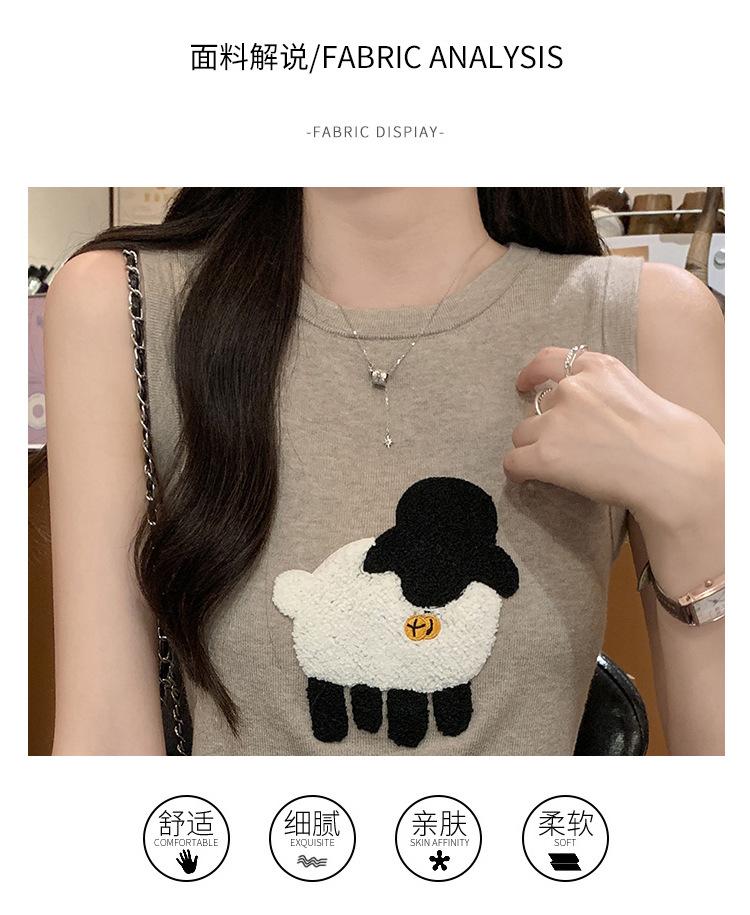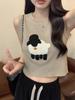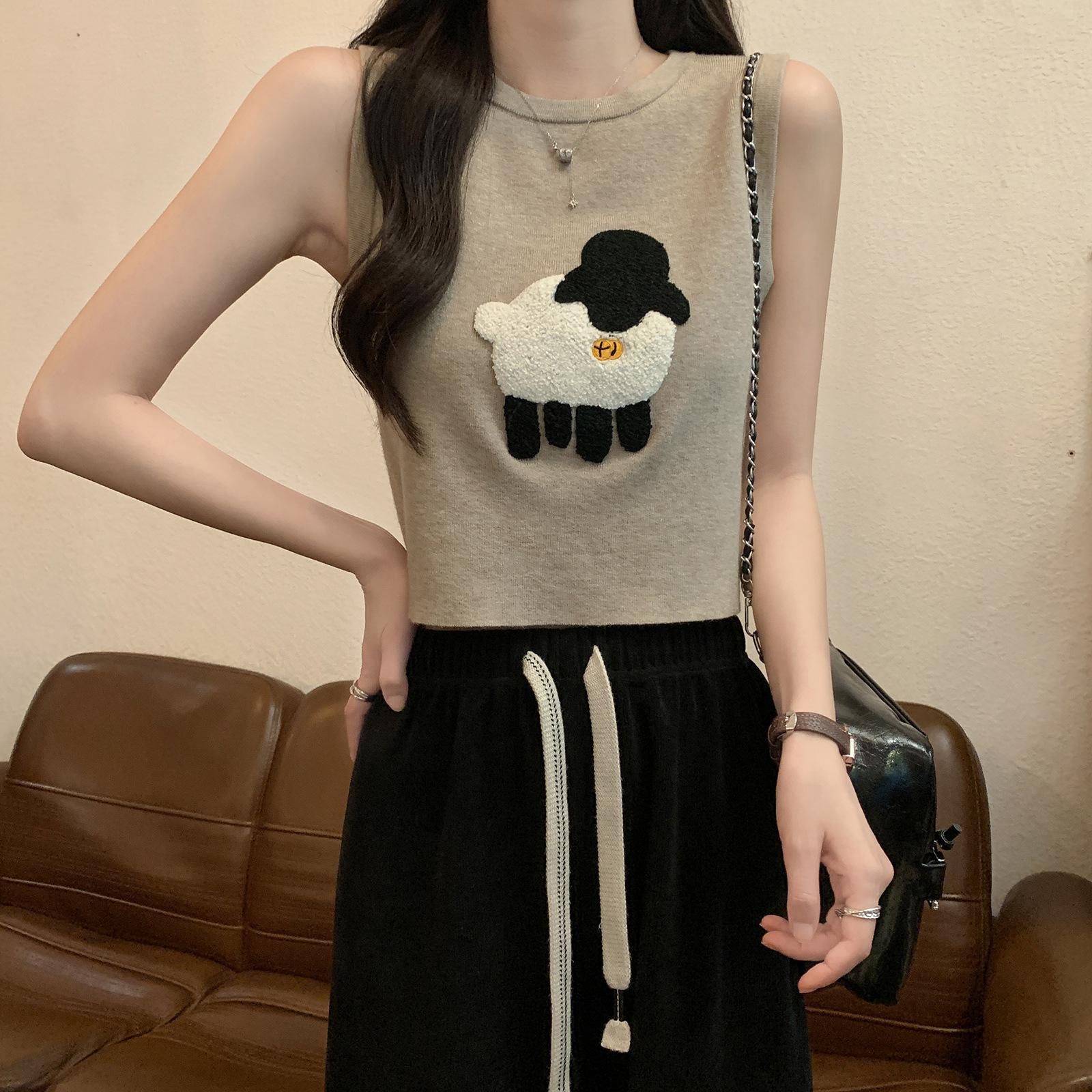 Cordeiro bordado curto malha colete feminino primavera e verão novo pescoço redondo design sentido puro desejo nicho empilhado mangas top