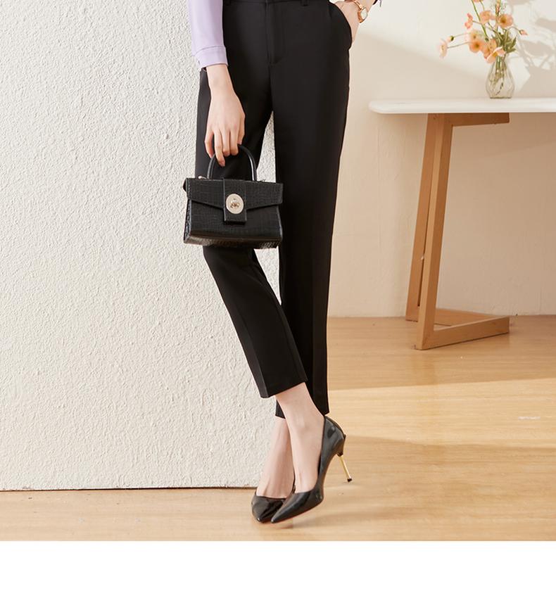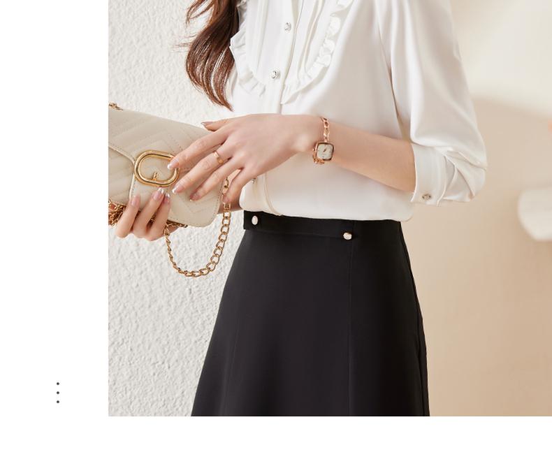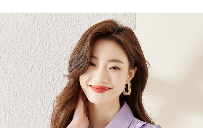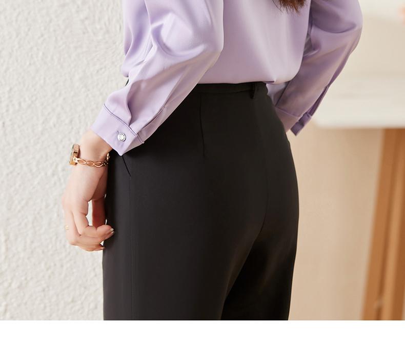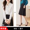 One-piece white shirt, One-piece purple shirt, Purple shirt + black casual pants, White shirt + black skirt