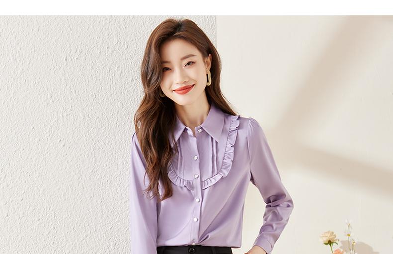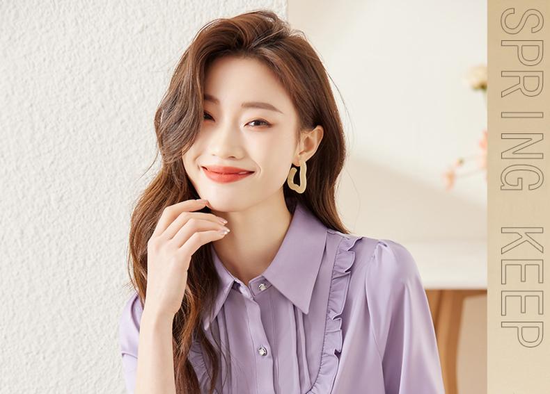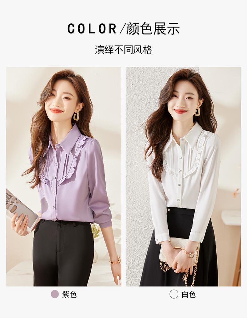 Camisa roxa feminina primavera e outono 2023 novo nicho design sentido chiffon top casual elegante interior manga comprida camisa