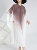 Moda Plissada Gradiente Batwing Manga Vestido Feminino Elegante Elegante Miyake Férias à Beira-Mar Vestido Longo Moda Europeia