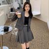 Real Shot Terno Casual Estilo Coreano Feminino Verão 2024 Novo Design Sense Colete Listrado Saia Camiseta Conjunto de Três Peças