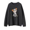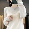 Outono e Inverno Novo Estilo 100 Lã Feminino Gola Redonda Listrado Base Contrastante Simples Solto Tricô Pulôver com Tricô