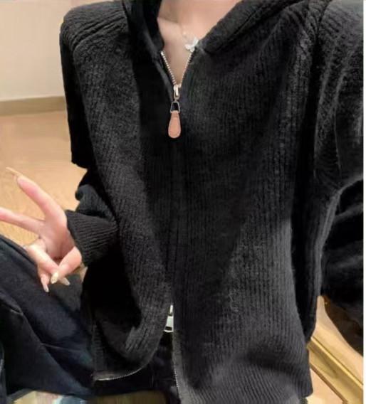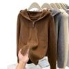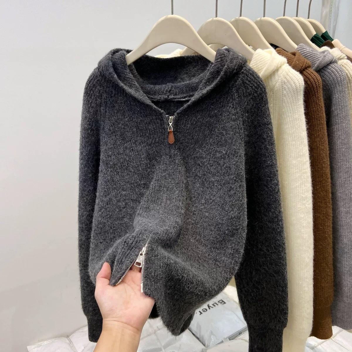 Cardigã com Capuz e Zíper Duplo para Mulheres Primavera 2025 Suéter Espesso Macio Ceroso Americano Lazy Chic Outwear Top Solto