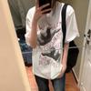 American Retro Finger Letter Print T-shirt de manga curta Girl's Summer Round Neck Loose Hip-hop Cotton Casual Top