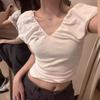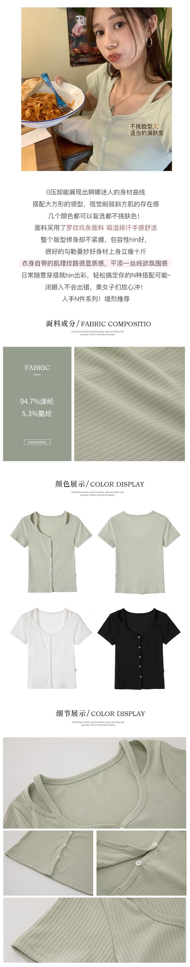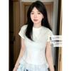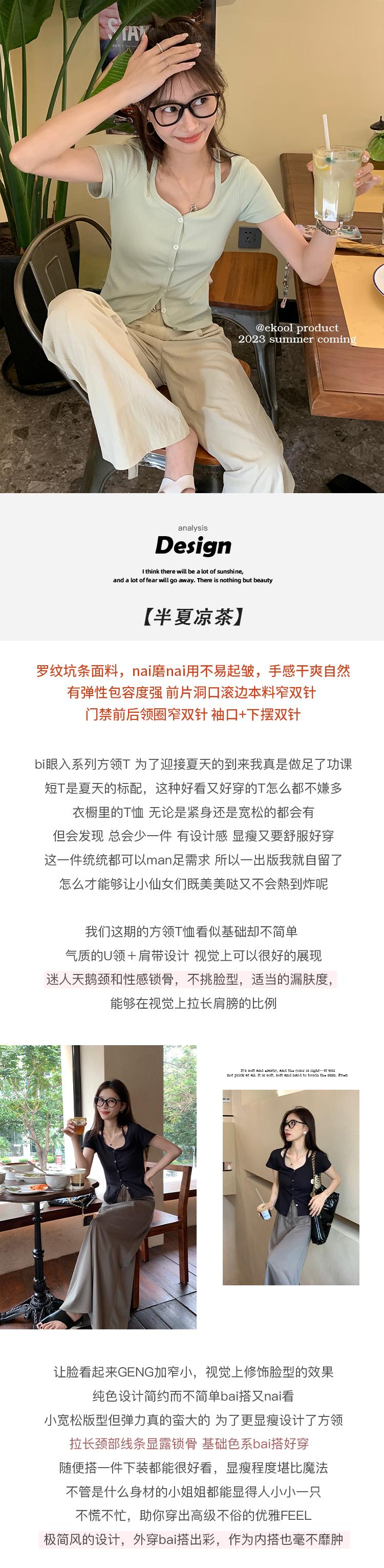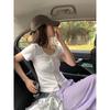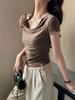 EKOOL Design Sense Nicho Ombro Manga Curta T-shirt Feminina Verão 2023 Novo Slim-fit Emagrecimento Gola Quadrada Short Top