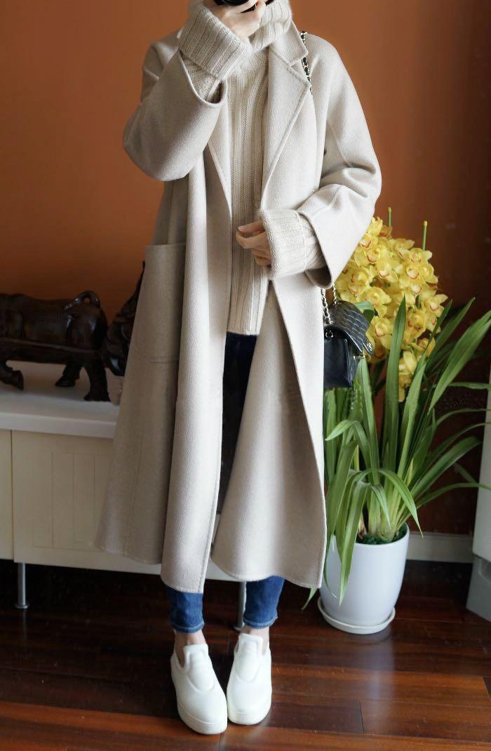 Outono e Inverno Novo Hepburn Estilo Lã Handmade Dupla face Casaco de Caxemira Mulheres de Médio Comprimento Coreano Estilo Casaco de Lã