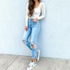 Vendas Diretas de Fábrica 2023 Jeans Feminino Novo Rasgado Europeu e Americano Street Trendy Lavado Slim Reto