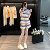 Conjunto Novo de Celebridade da Internet Verão 2025 Esportivo Casual Shorts de Perna Larga Fashion Estampado Manga Curta Americano Conjunto de Duas Peças